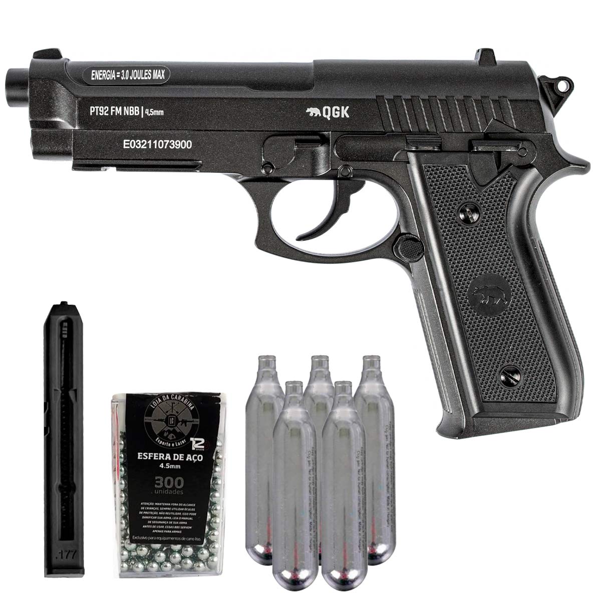 PISTOLA DE PRESSÃO PT92 + MAGAZINE + ESFERAS + CO2 + ÓLEO DE SILICONE