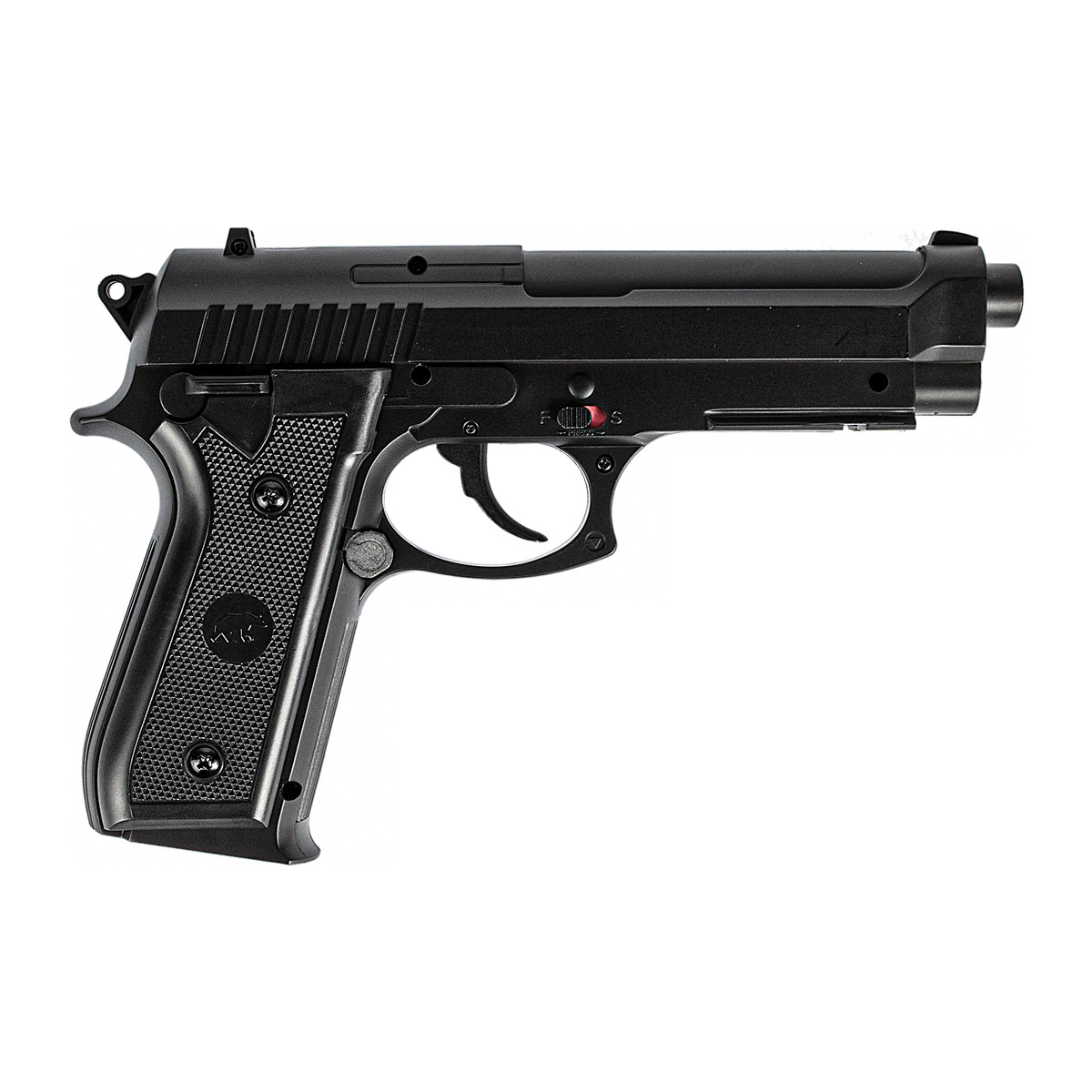 Versão da Pistola de Pressão Beretta PT92 fabricada pela QGK na cor preta em polímero de alta densidade e sistema Co2 de propulsão.