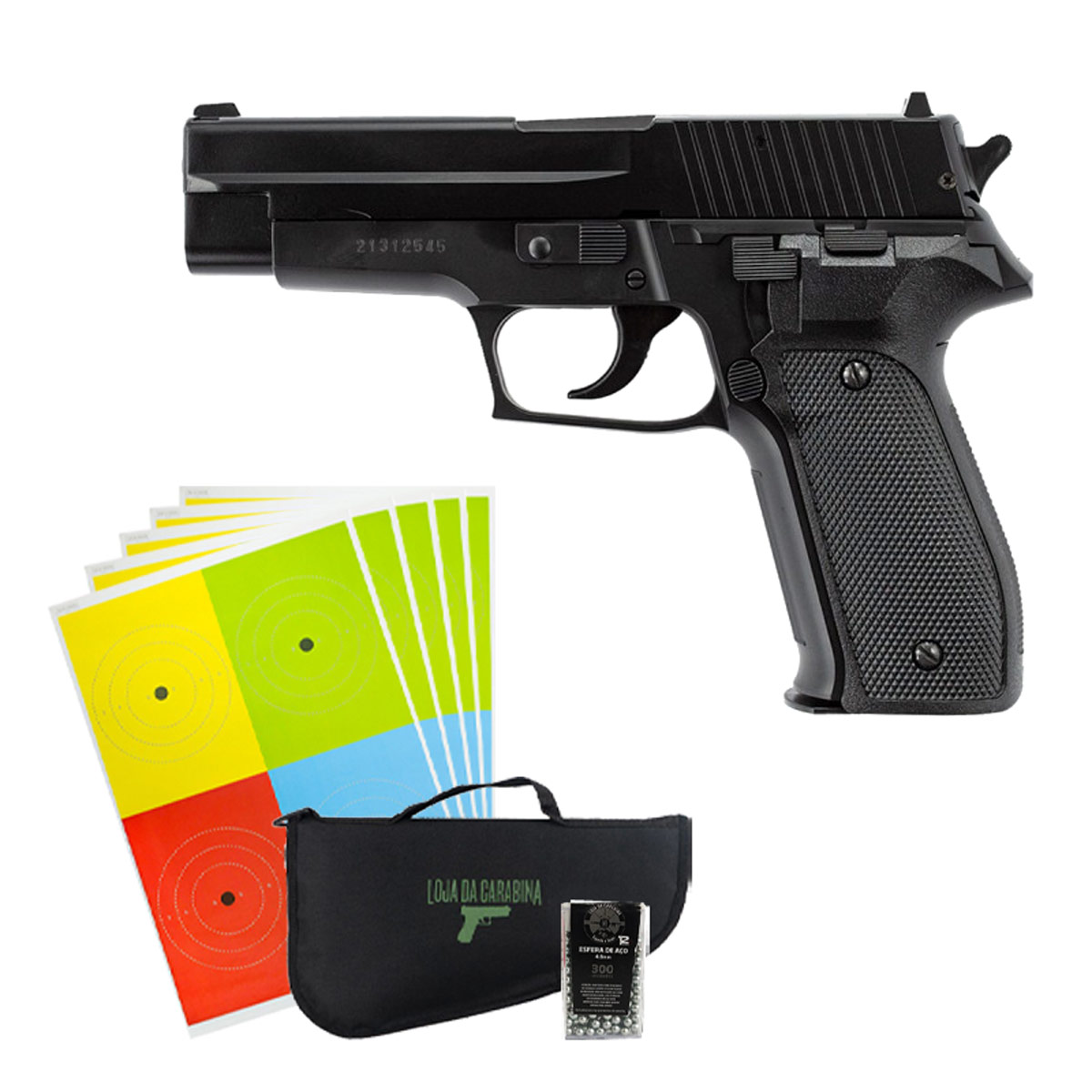 PISTOLA PRESSÃO SIG P226 4.5MM + ESFERA DE AÇO + CAPA + ALVOS