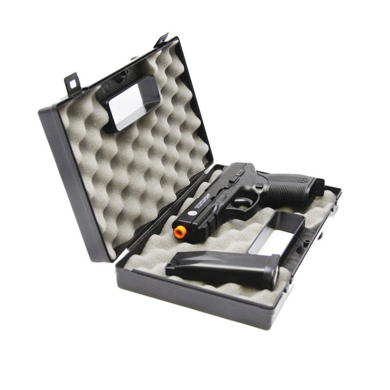 Acompanha uma maleta rígida para transporte e também para guardar com mais segurança e cuidado a sua pistola.