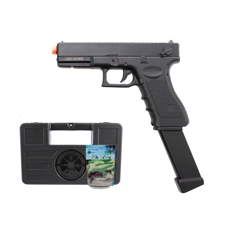 PISTOLA AIRSOFT CYMA GLOCK é um modelo de pistola elétrica muito utilizada na pratica do airsoft.