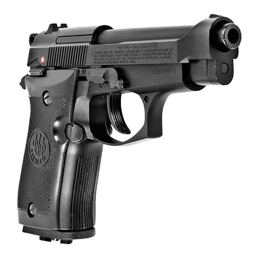 Esta replica da pistola Beretta Mod.84 FS tem todas as qualidades especiais do modelo original: encaixa bem na mão e é de fácil manuseio. A robusta pistola toda em metal, possui um magazine removível com uma capacidade para 17 esferas de aço (steel BB) no cal. 4.5 mm e uma cápsula de 12 g de CO2. A trava do slide e a alavanca de segurança proporciona um manuseio realístico e próprio para treinamento. Com sua alta potencia e poderoso efeito blowback, esta pistola causa uma impressão verdadeira e autentica.