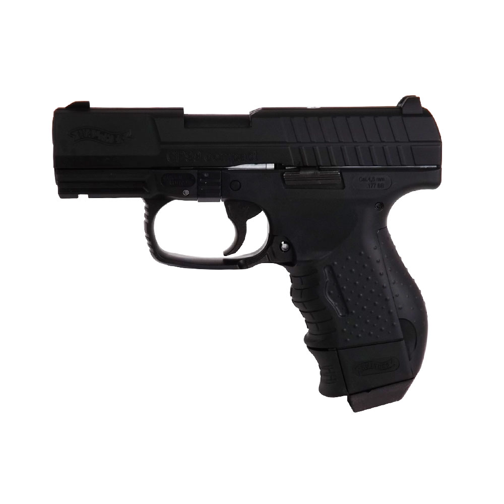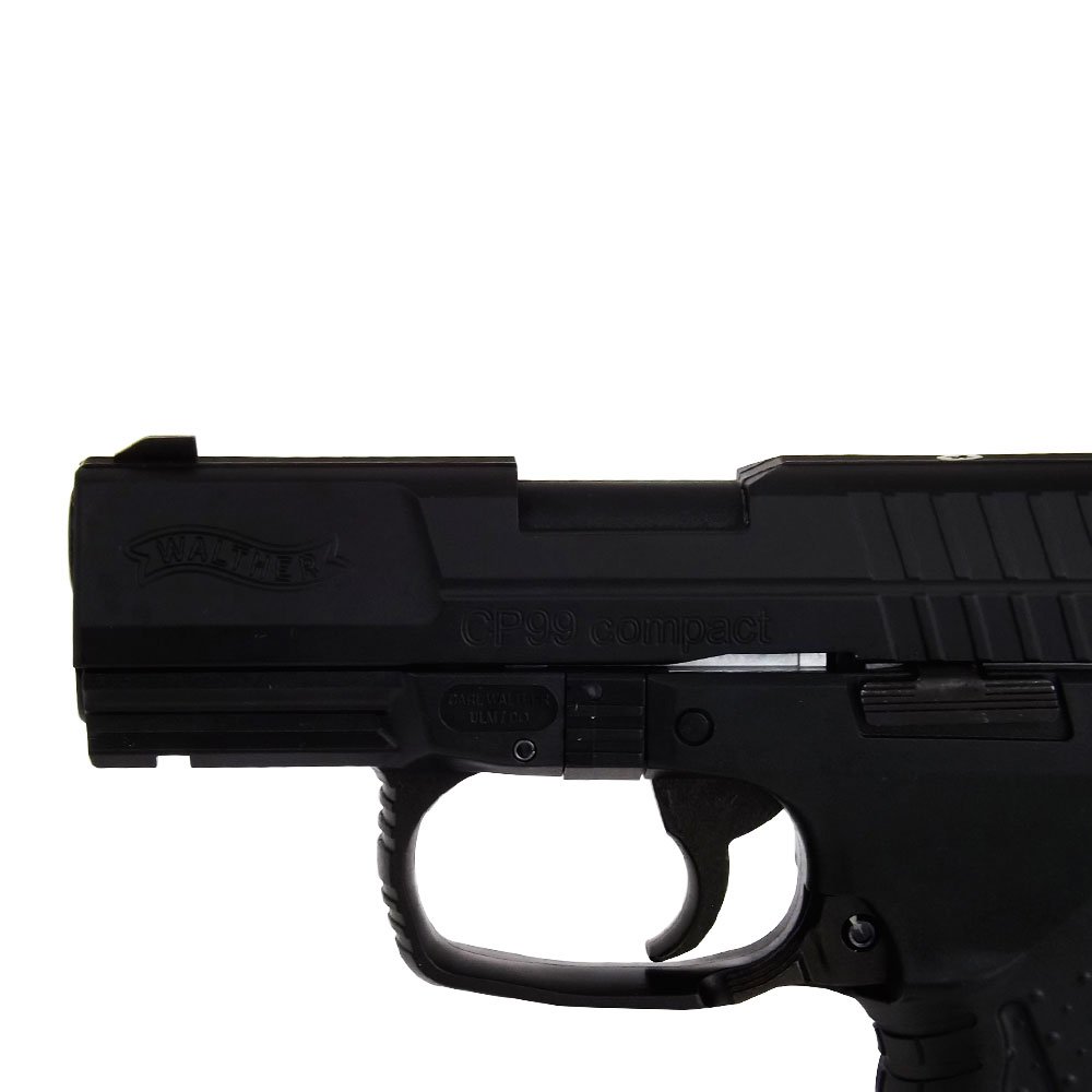 Esta versão em CO2 da Walther CP99 Compact, se destaca pelo manuseio realístico e suas funções. O impressionante efeito blowback é ressaltado pelo slide de metal, e a grande capacidade de tiros do magazine garante muita diversão.