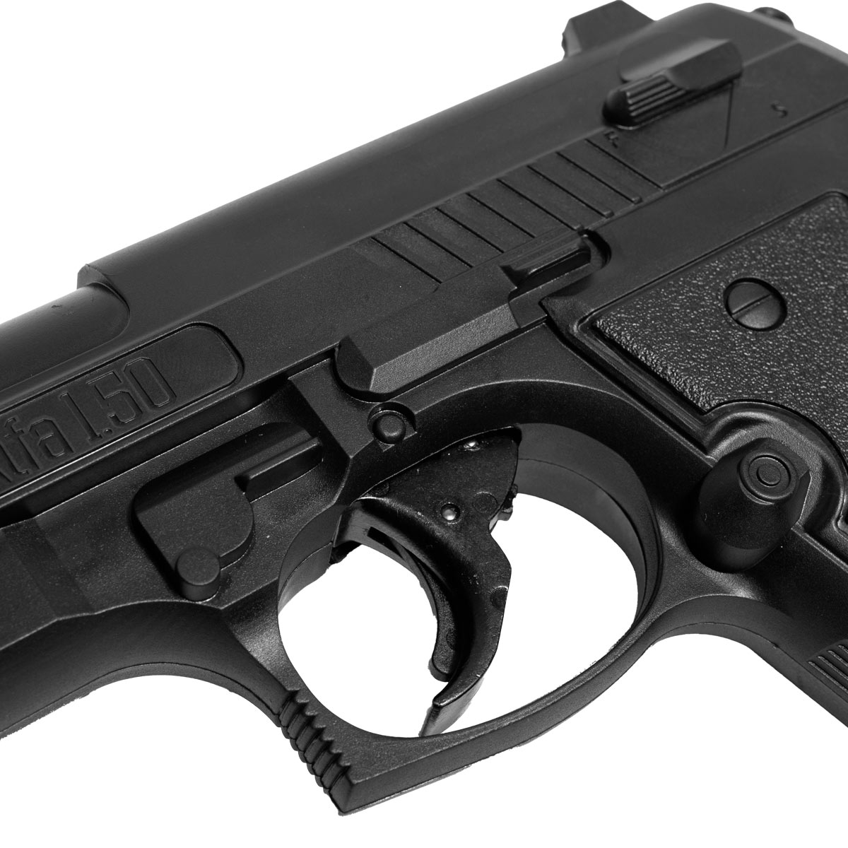 Pistola para defesa pessoal Alpha 1.50 fabricada pela LTL (Less Than Lethal). Essa pistola dispara tanto bolas de borracha como esferas de aço no calibre .50 e tem ação por co2 com alimentação por 01 cilindro de co2 12g.