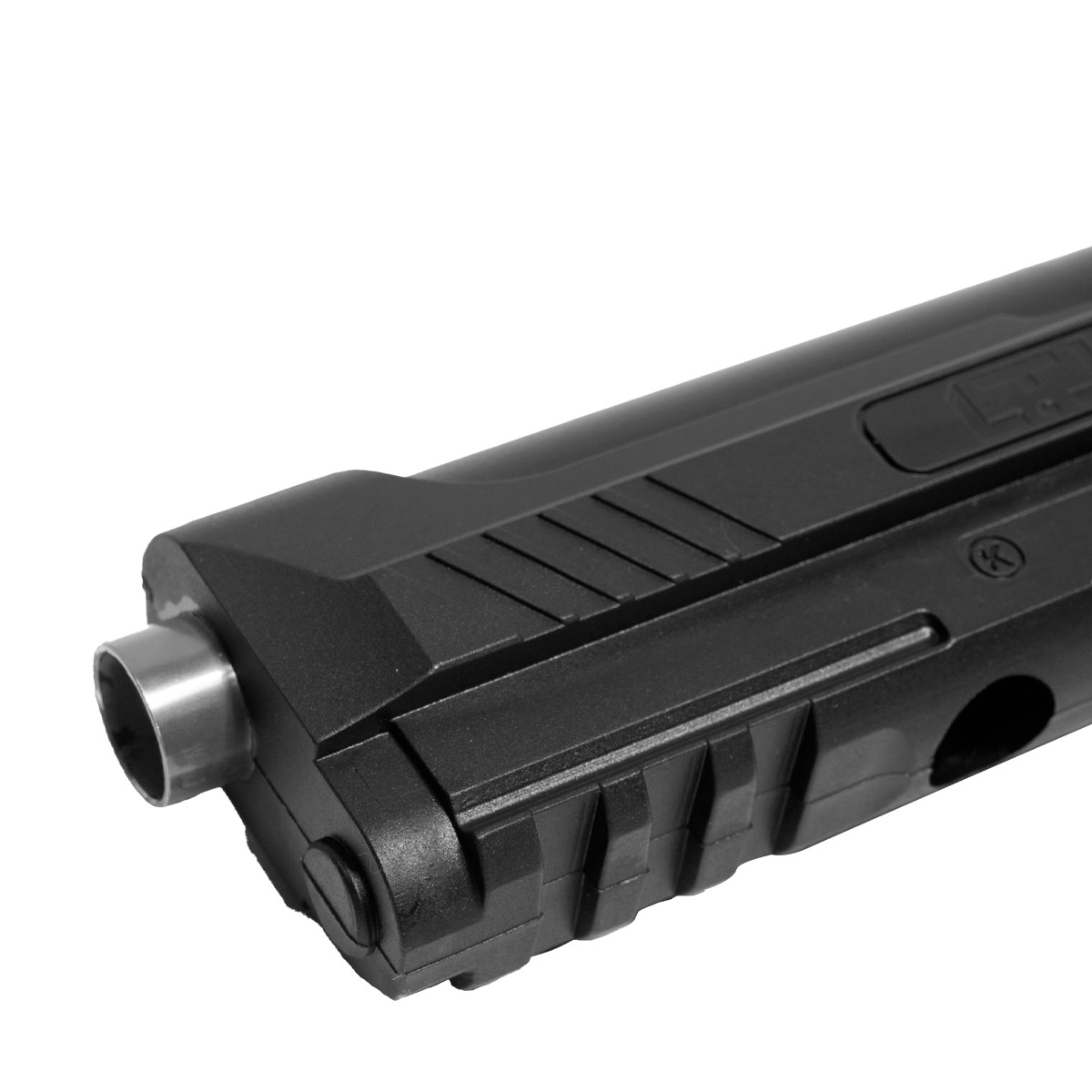 Possui trilho inferior de 20 mm picatinny que vai permitir a instalação de uma lanterna, deixando o visual da pistola mais tático e também facilitando o uso noturno e em ambientes de baixa luminosidade.