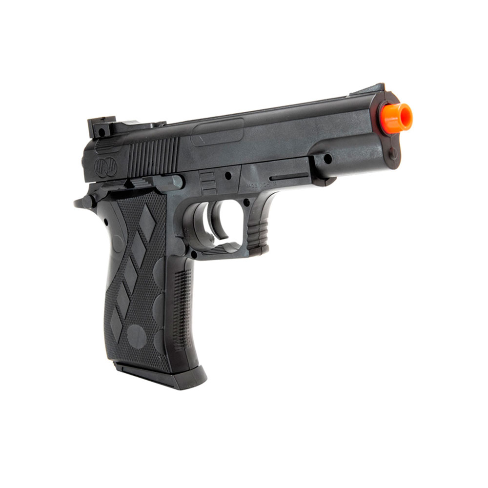 Ação Spring (mola), ou seja, para efetuar os disparos é necessário sempre engatilhar a sua pistola antes de apertar o gatilho, movimentando o slide para frente e para trás.