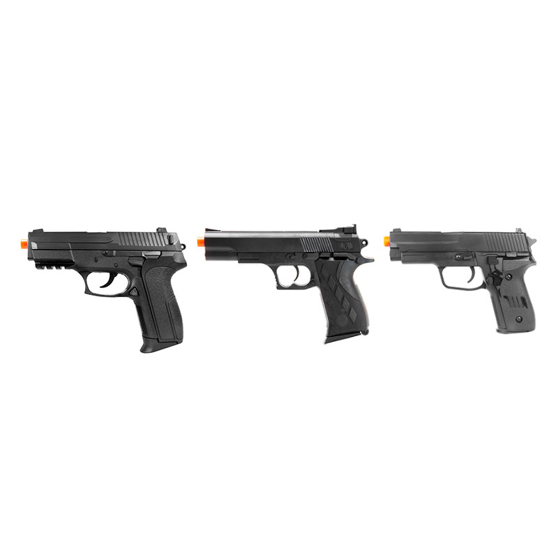 3 Pistolas Airsoft Spring Vigor, S2022, 1911Sw e P226. Diversão garantida!