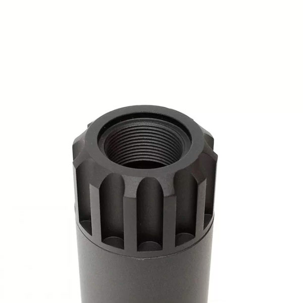 Ponteira supressora para AEG com duas roscas de 14mm (com adaptador) e 18mm traseira, sendo uma em sentido horário e outra anti-horário.