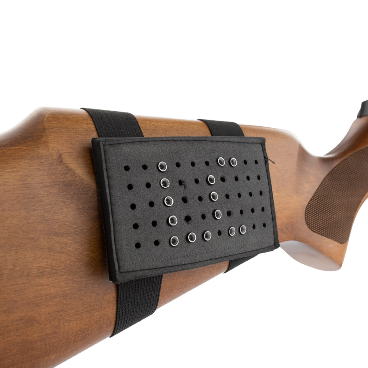 Possui fitas elásticas nas costas para se adequar a coronha da sua carabina, ao seu pulso ou onde você preferir.