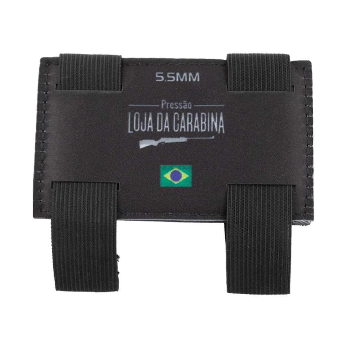 Almofadado, o porta chumbinho pode armazenar até 50 chumbinhos no calibre 5.5mm.