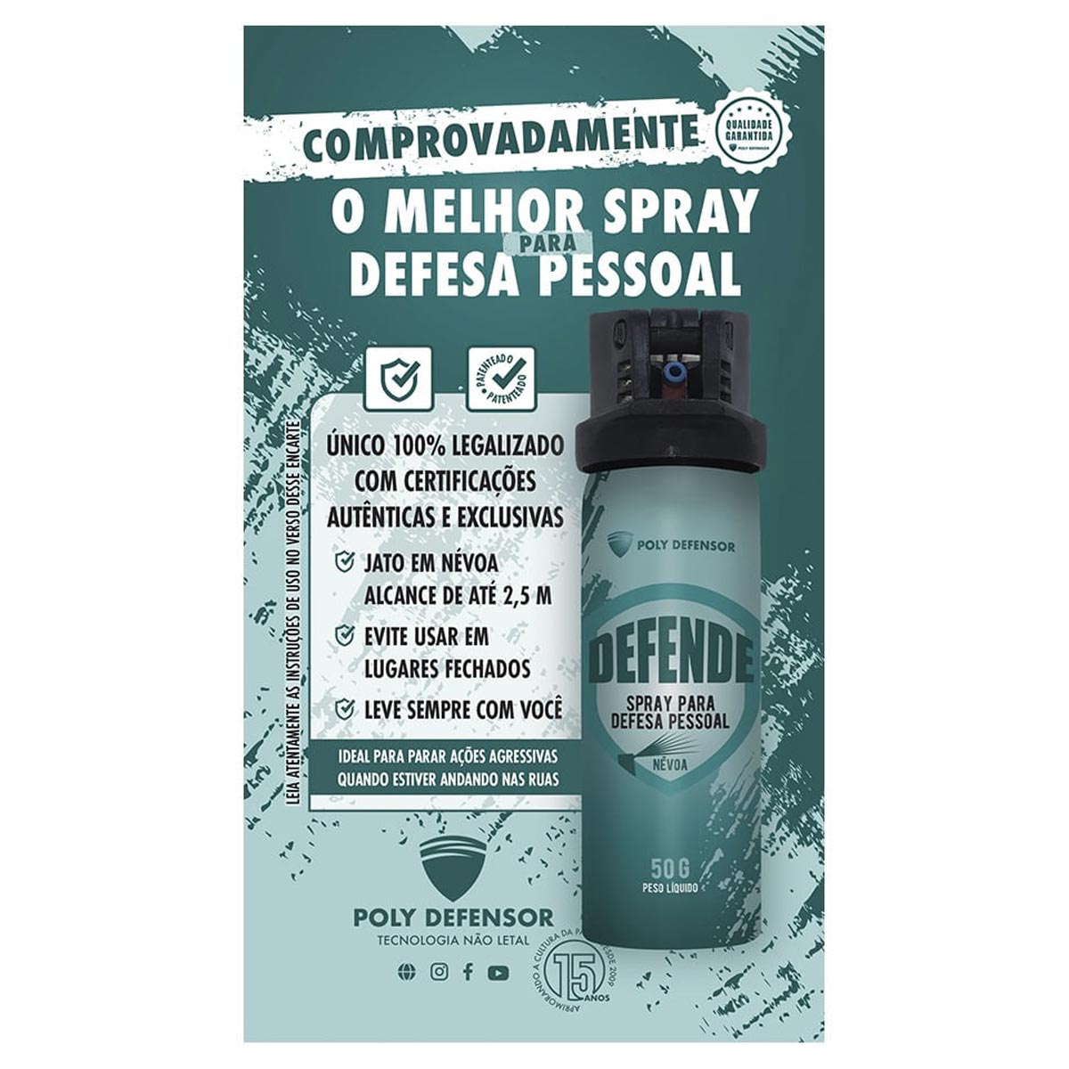 Spray com jato direto imobilizante para defesa pessoal, altamente efetivo e não letal.