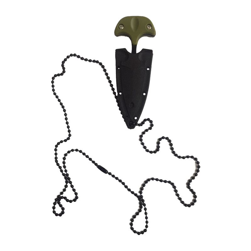 Equipada com corrente que permite pendurar a push dagger no pescoço, tornando-a em um acessório tático.