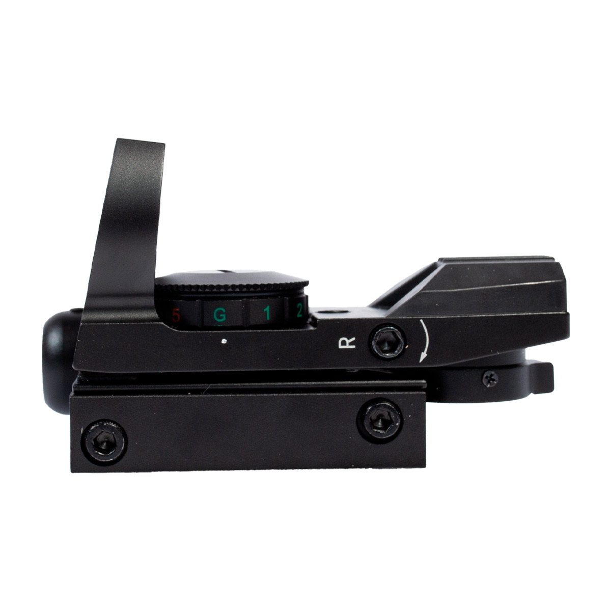 O red dot possui 4 opções de retículo, sendo eles: Ponto circular, cruz, 10 MOA e 3 MOA, permitindo que o atirador alterne entre as opções rapidamente para escolher o que mais for útil no momento. Além disso, possui duas cores do retículo, sendo verde e vermelho.
