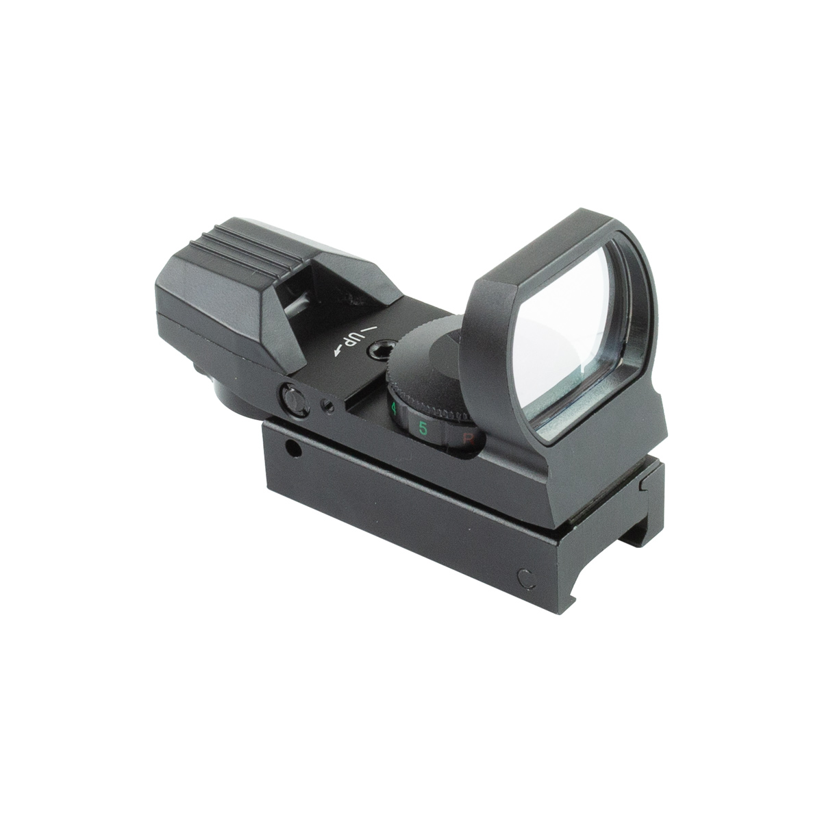 Possui retículo luminoso nas cores vermelho e verde, com até ajuste de até 5 níveis de intensidade do brilho.