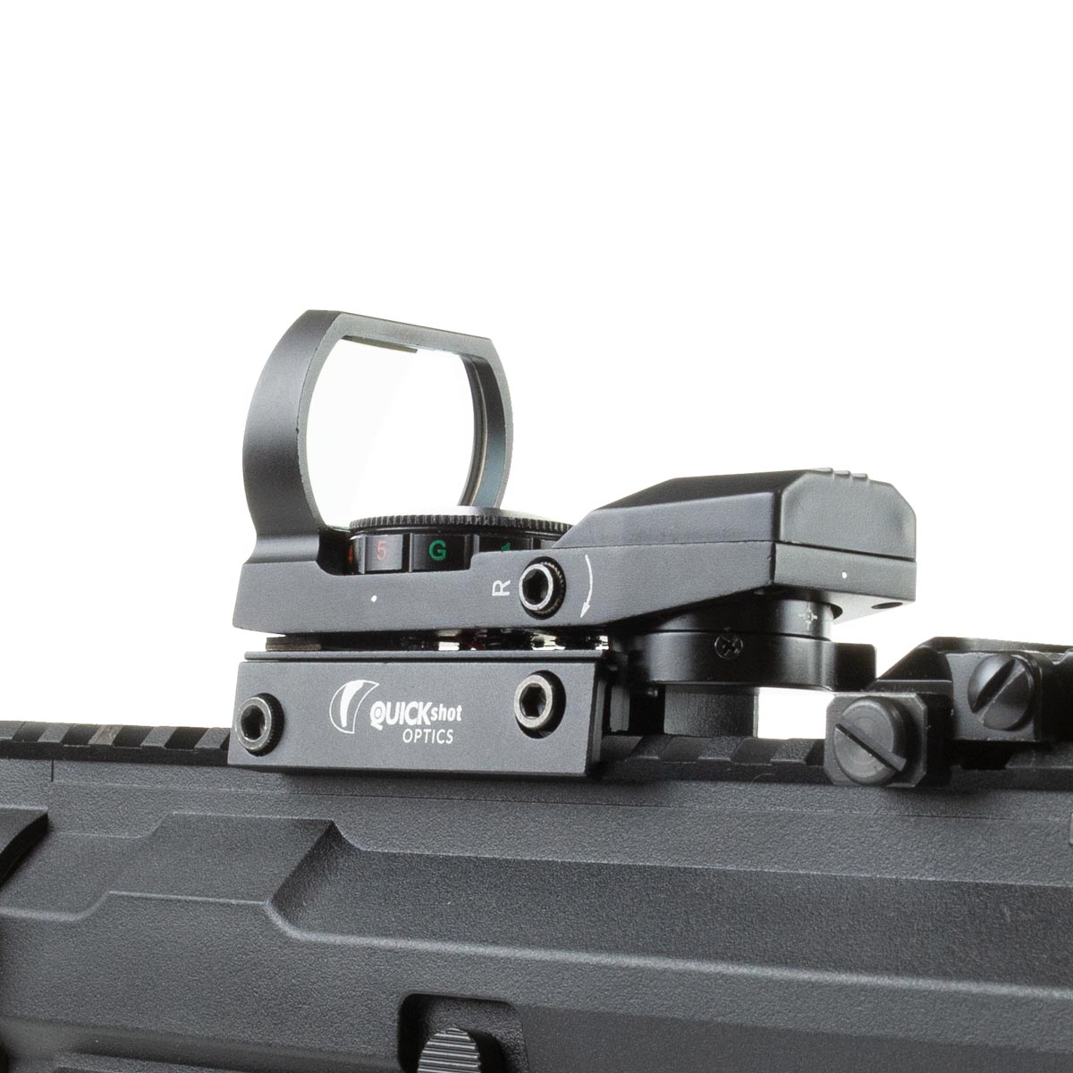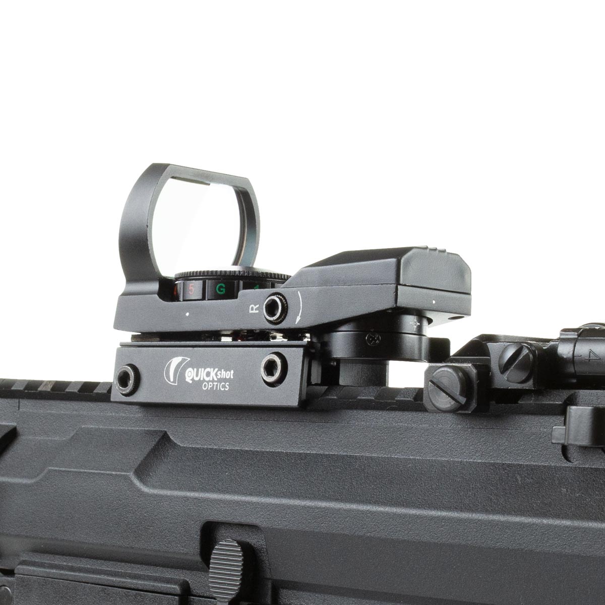 Essa mira holográfica da QuickShot, tem design compacto, resistente e muito prático, sendo a escolha ideal para o seu armamento.