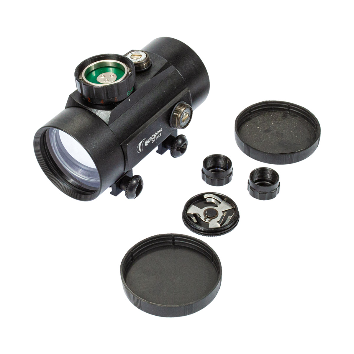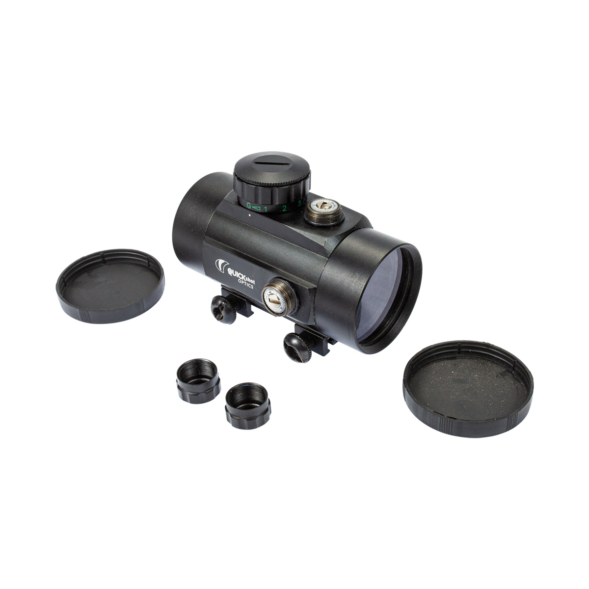 Red dot 1x40 QuickShot é um equipamento tático prático, fabricado inteiramente em metal. É um dispositivo óptico de alta qualidade, resistente e durável com design compacto que tem grande compatibilidade para instalação em diversas armas.