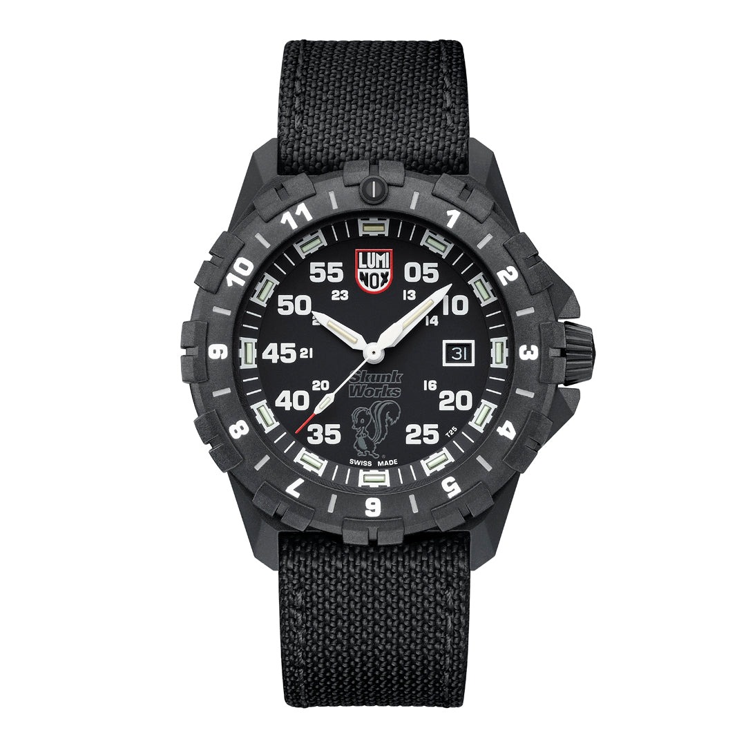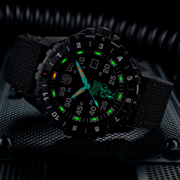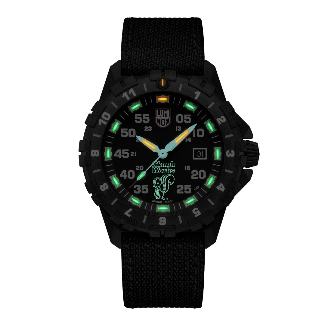 O trabalho do Skunk Works® é marcado por inovação rápida, engenharia precisa e sigilo absoluto, qualidades que inspiraram diretamente o design e o conceito deste relógio Luminox.