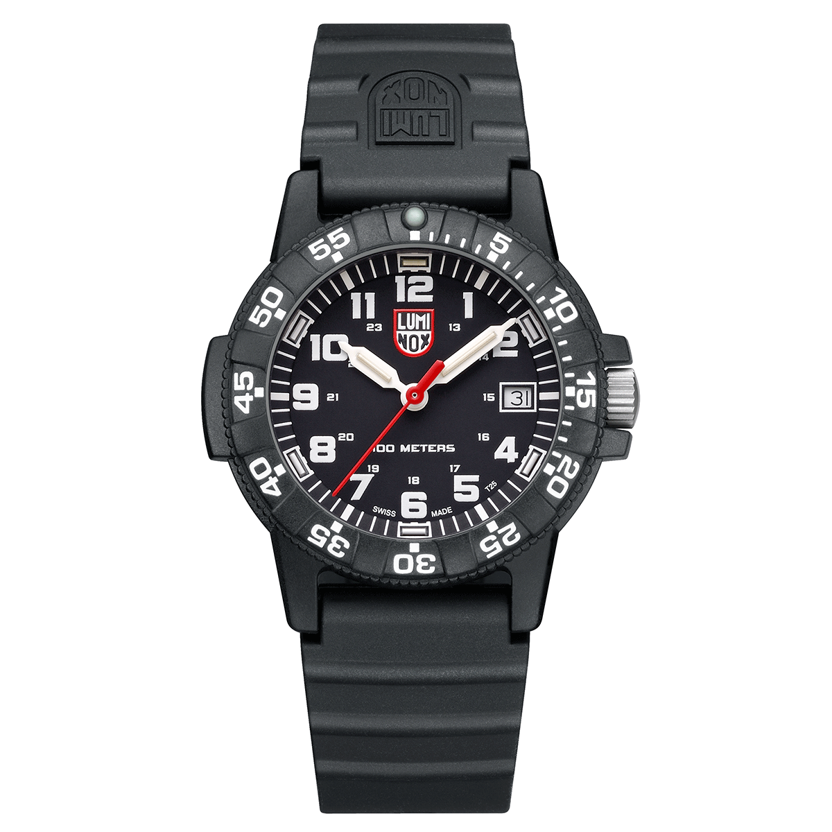 A caixa de 39mm em CARBONOX™ é um destaque à parte. Este material inovador, exclusivo da Luminox, combina leveza extrema com resistência superior a impactos e corrosão.