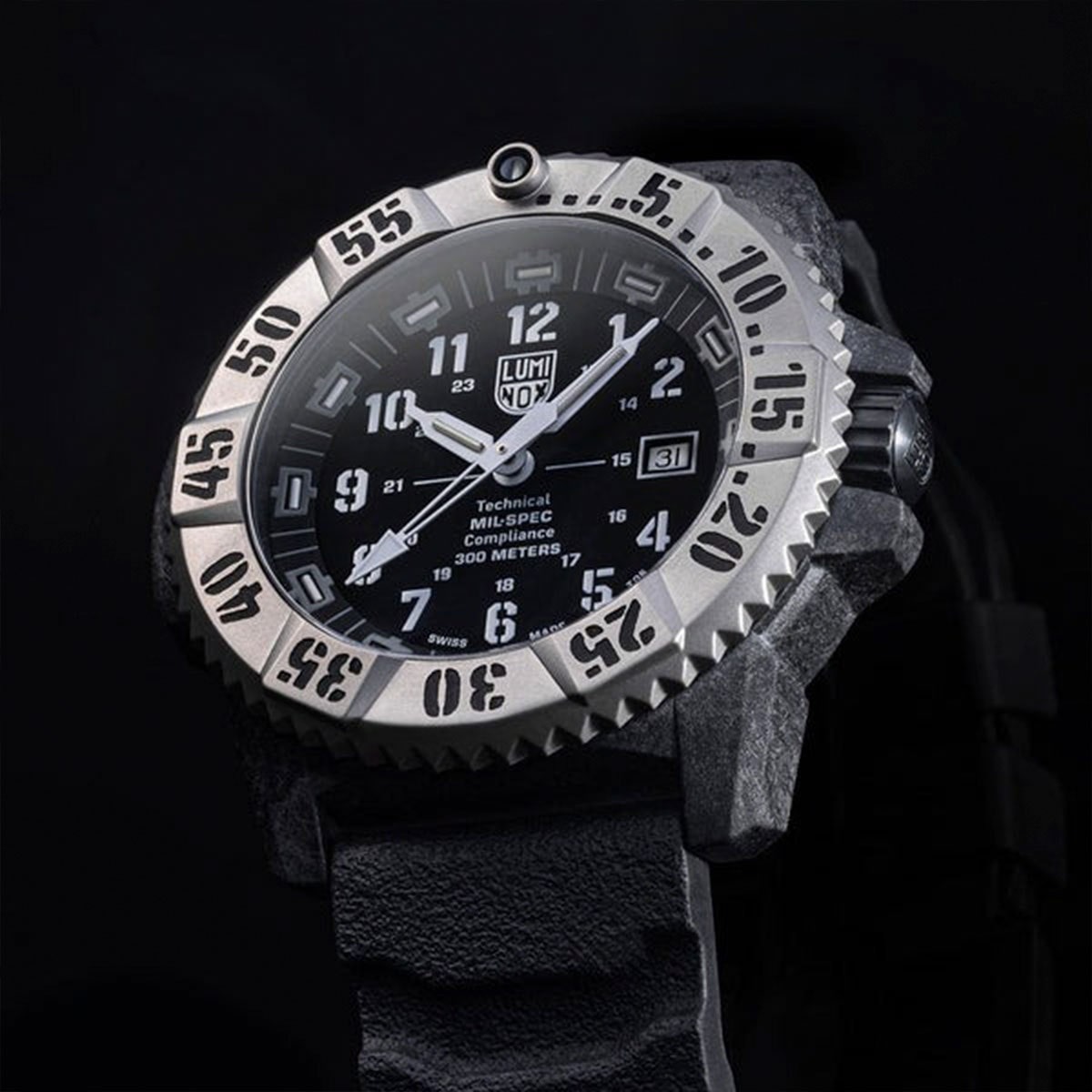 A caixa do Luminox Mil-Spec é feita em CARBONOX™+, uma evolução do CARBONOX™ tradicional.