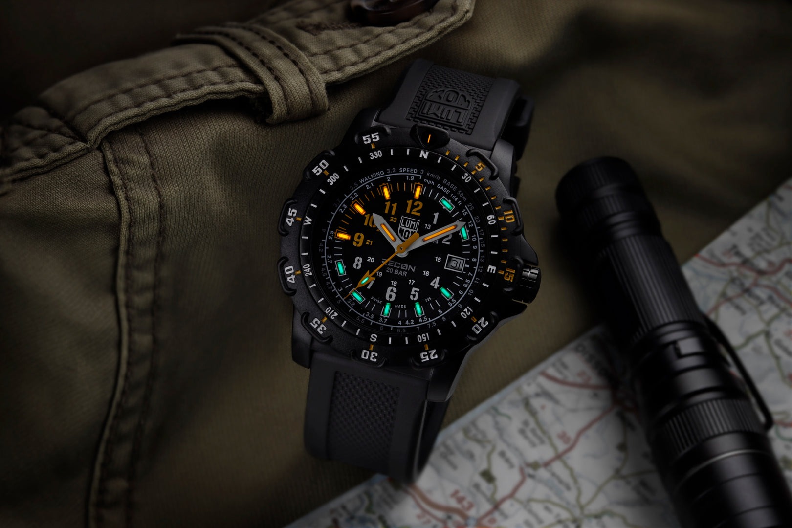 Cada detalhe do Recon Point Man Heritage reflete a filosofia da linha Luminox Land Series, projetada para operações em solo, onde cada decisão pode significar o sucesso da missão.