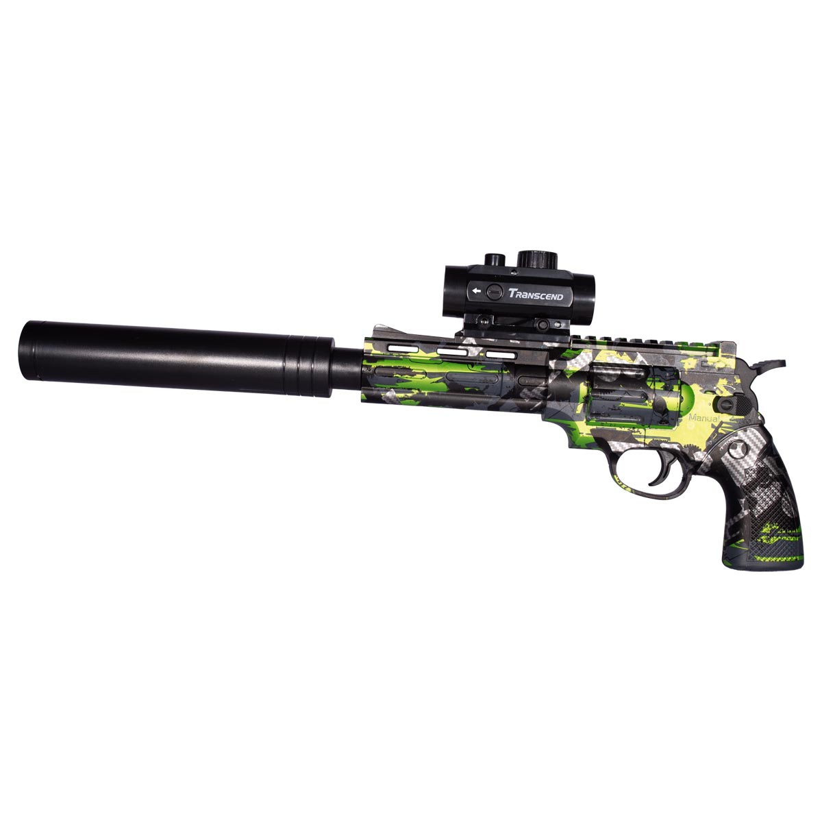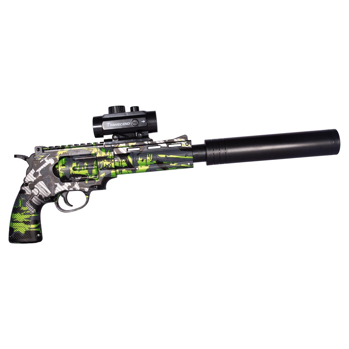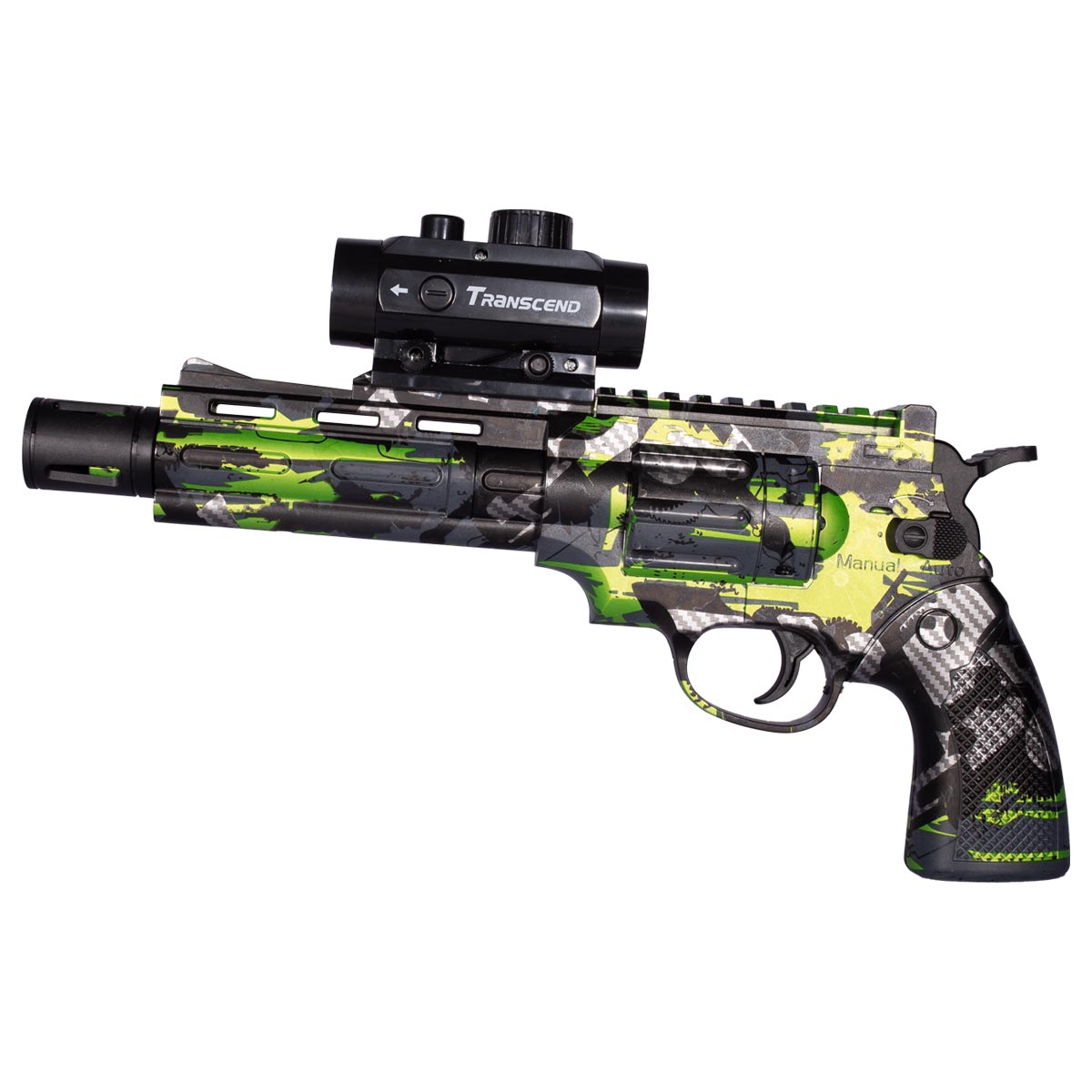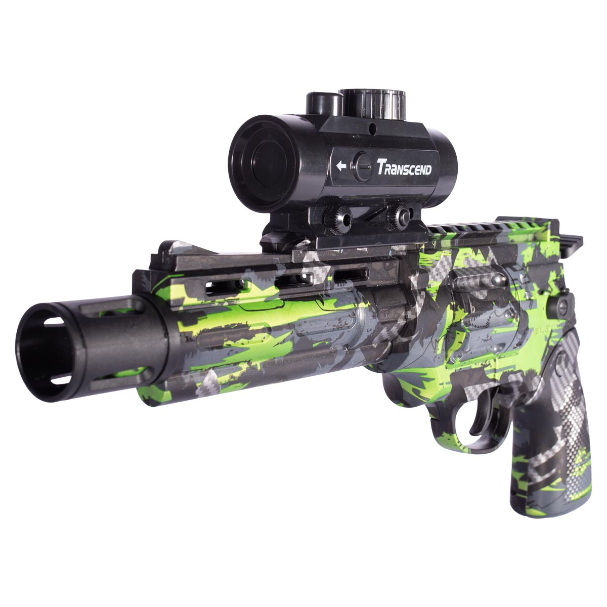 Revólver que dispara bolinhas de gel (Orbeez) com design camuflado na cor verde.