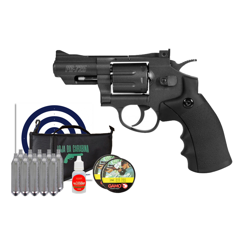 Revólver Co2 Gamo PR-725 + CHUMBINHO + CO2 + ÓLEO + CAPA + ALVO