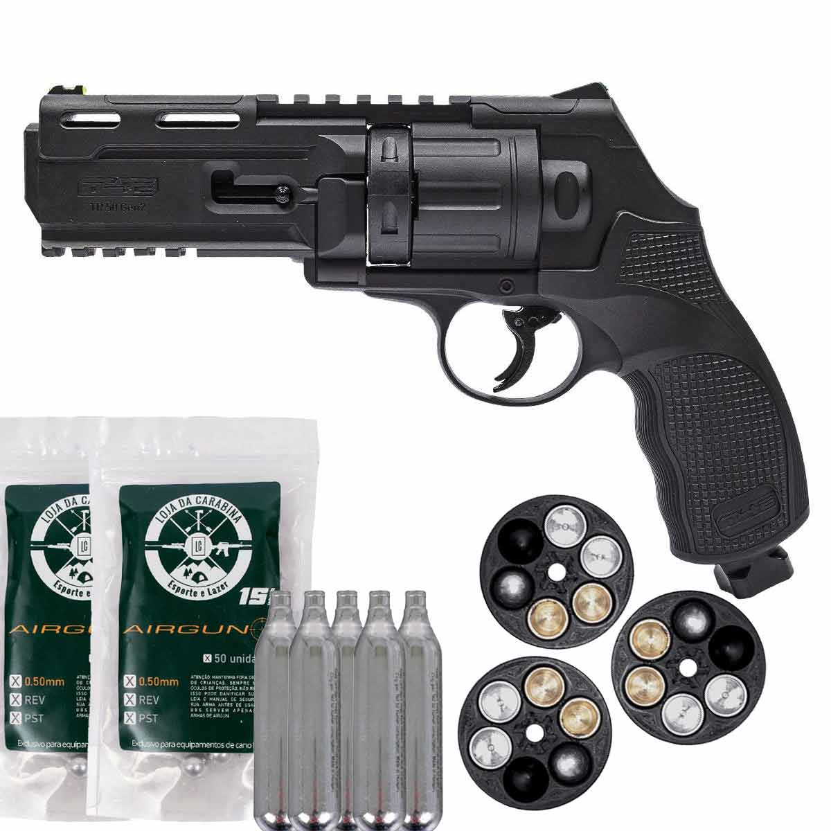 Revólver Co2 T4E TR 50 Gen2 Paintball Ram Umarex + Magazine 3D LC + Esferas 100Un + 5x Co2