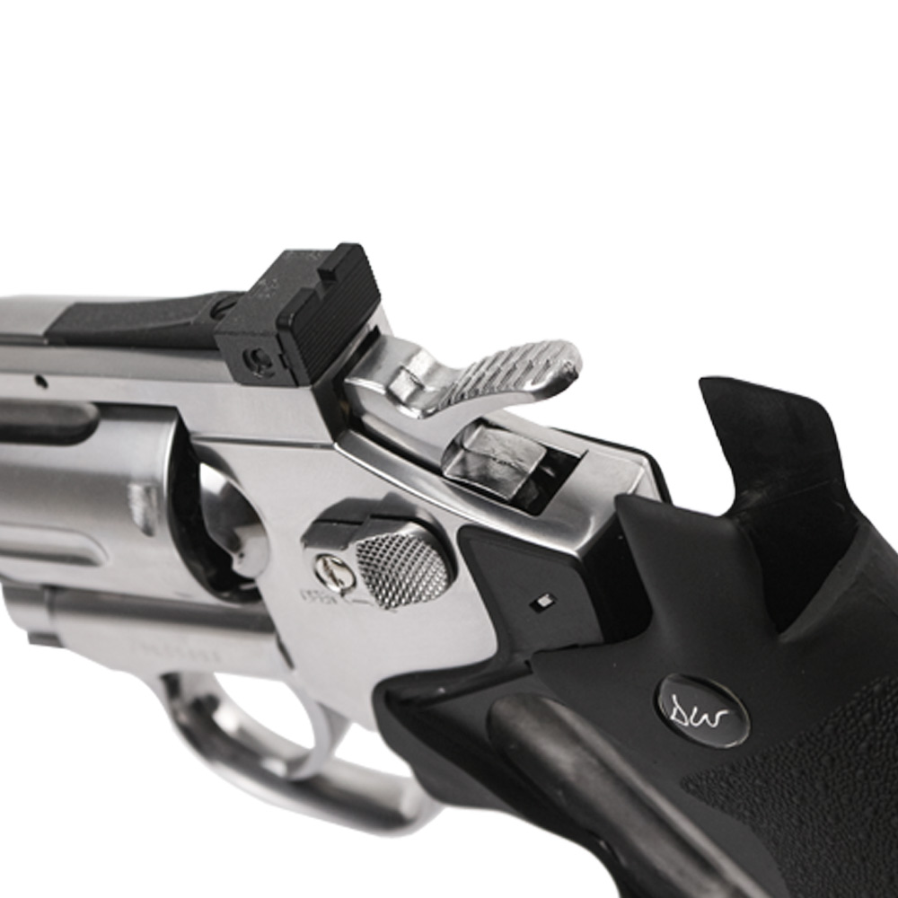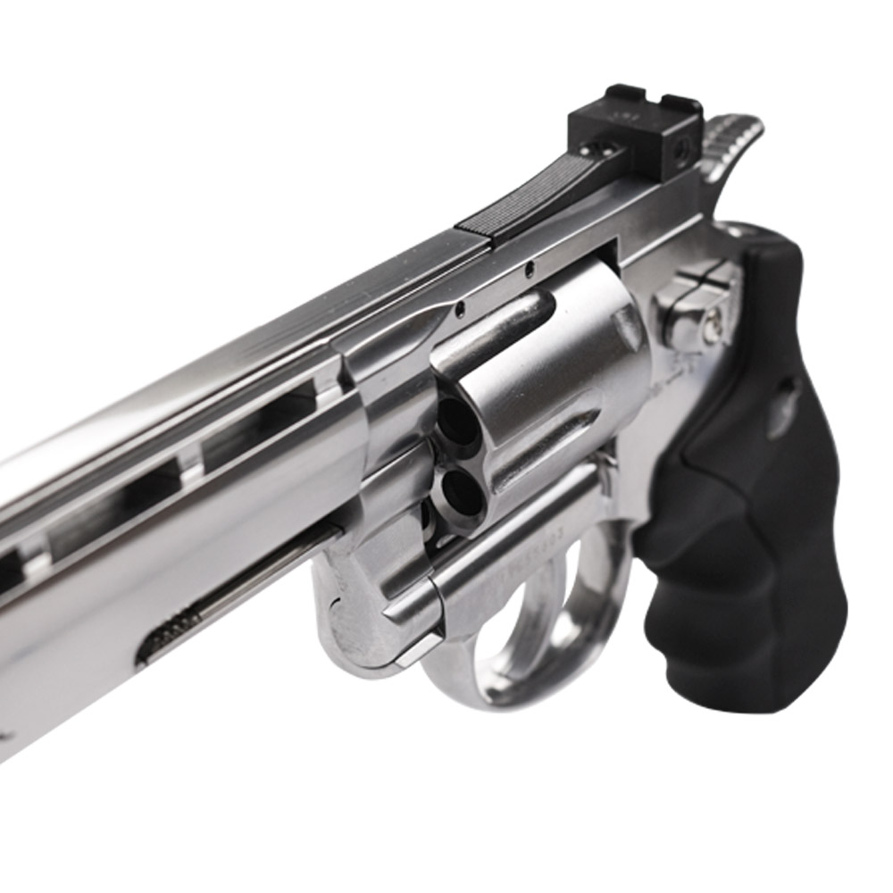 Revólver Cromado Full Metal, licenciado pela Dan Wesson e fabricado pela ASG. É um lindo modelo com marcações autenticas que oferece um excelente desempenho e precisão! Você vai se apaixonar!