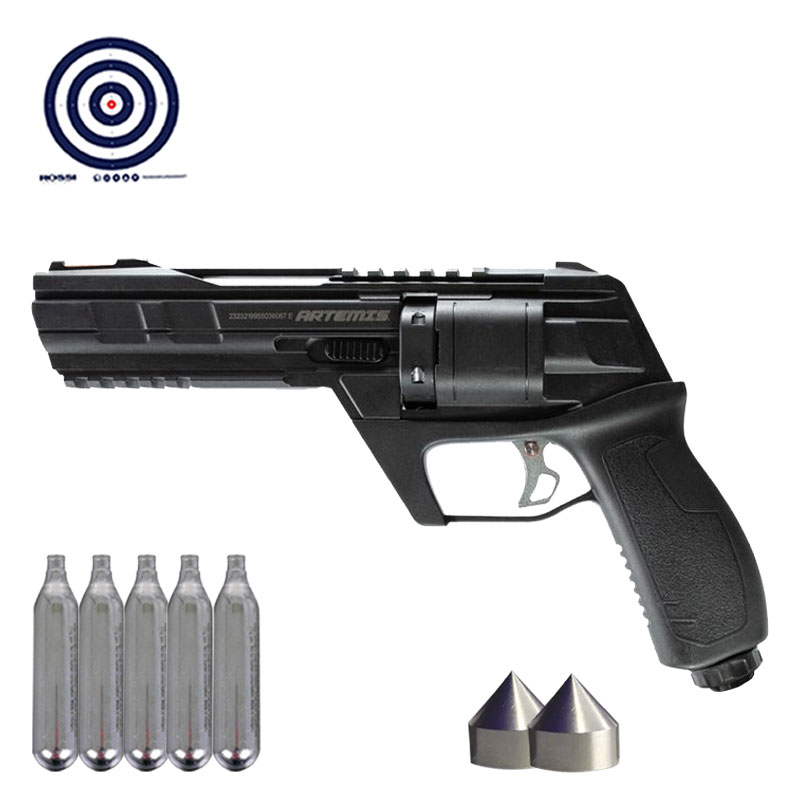 REVÓLVER ARTEMIS .50 CP300 DEFENDER CO2 - DEFESA PESSOAL + ESFERAS .50 + CILINDROS DE CO2 + ALVOS ROSSI