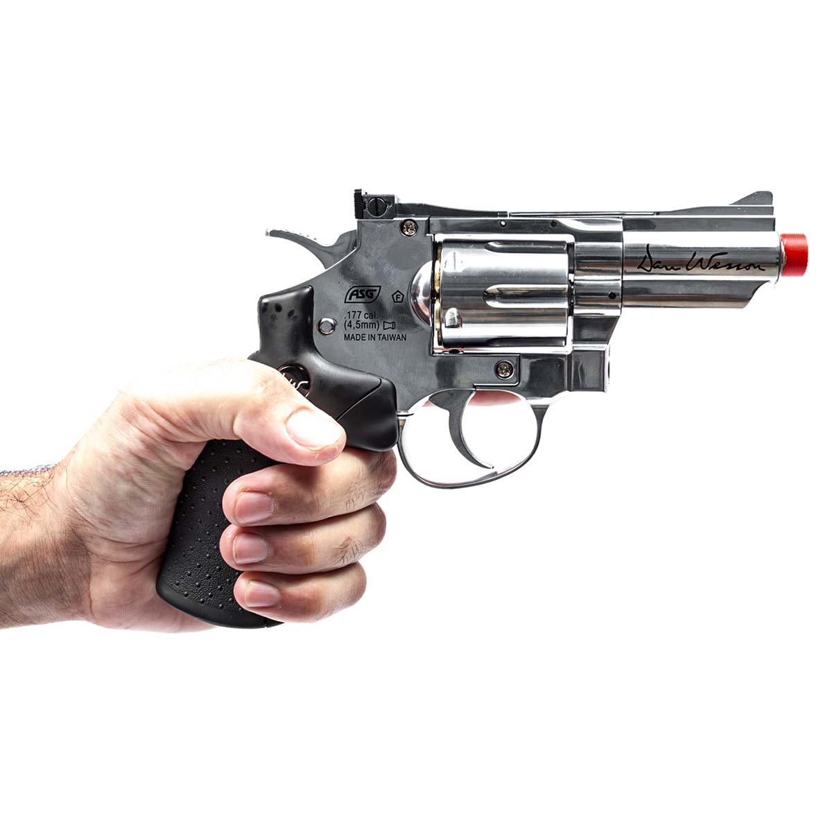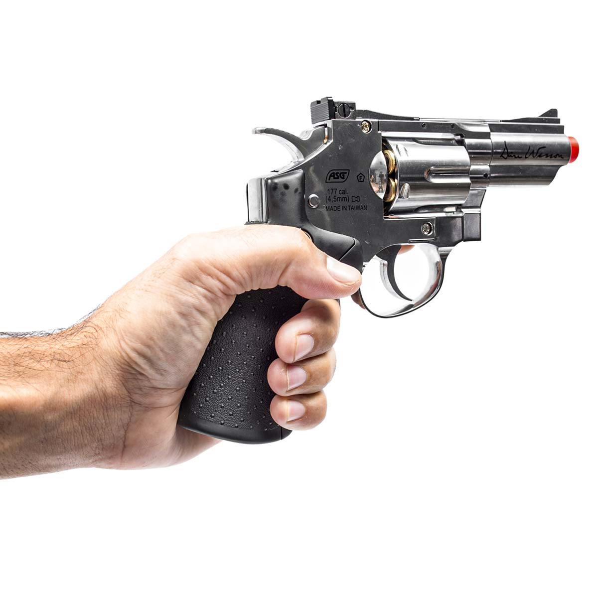 O Revólver de Pressão Dan Wesson 2.5" calibre 4,5mm é uma réplica compacta e robusta desenvolvida para proporcionar alto nível de realismo, qualidade de construção e excelente desempenho no tiro esportivo recreativo. Produzido sob licença oficial da Dan Wesson e fabricado pela reconhecida ActionSportGames (ASG), este modelo combina acabamento premium com funcionamento fiel ao de um revólver tradicional.