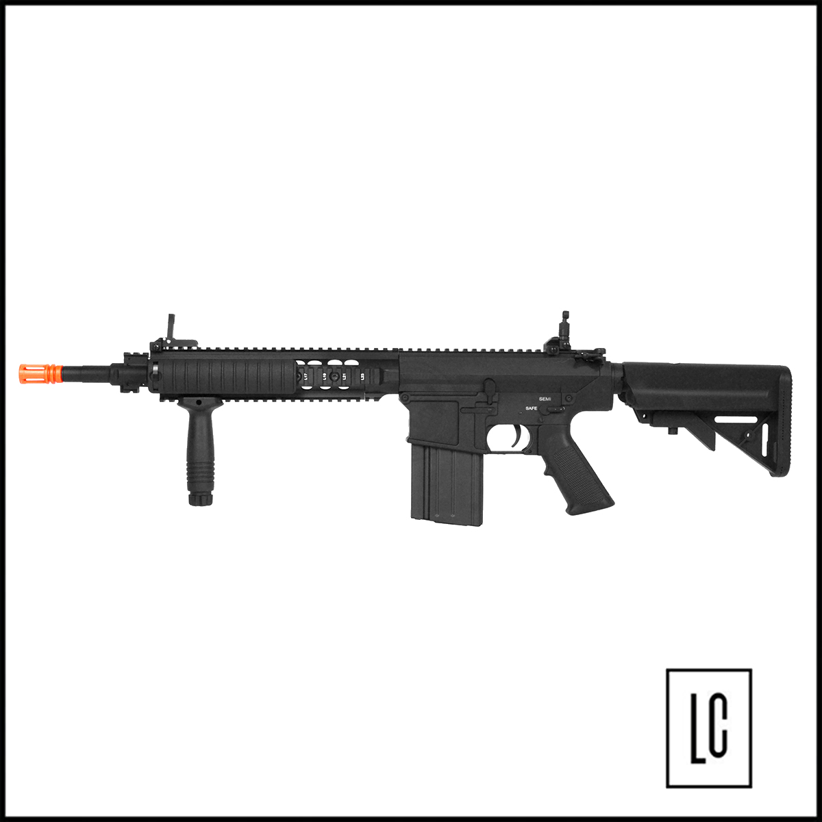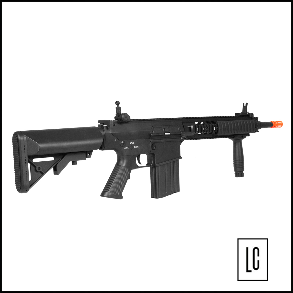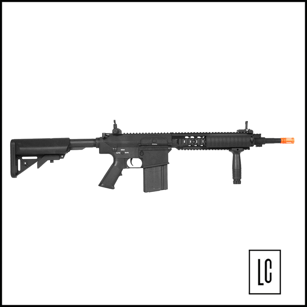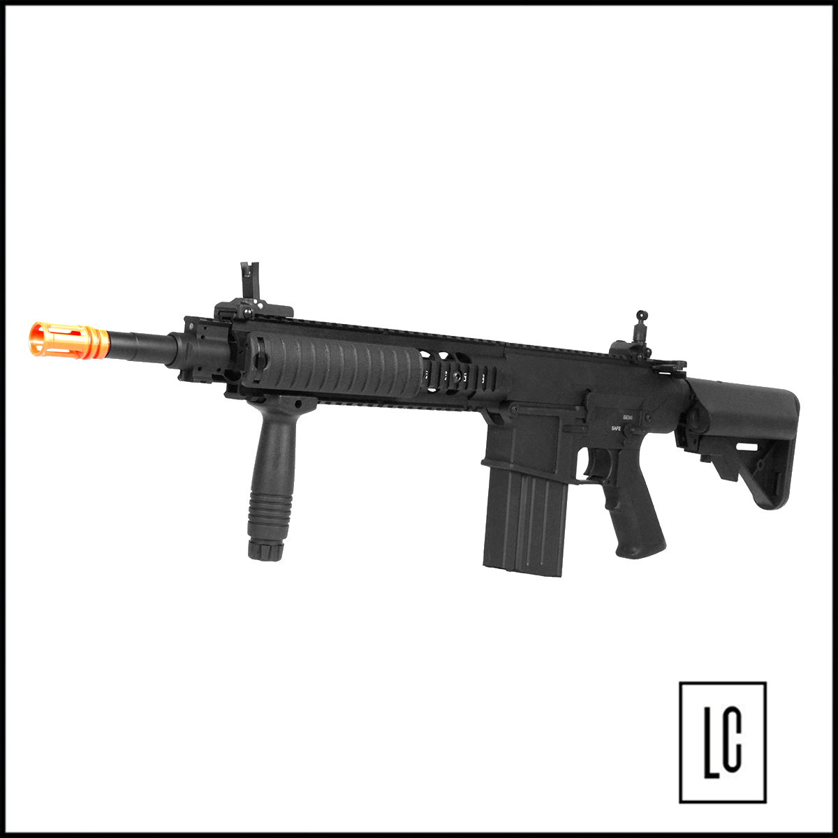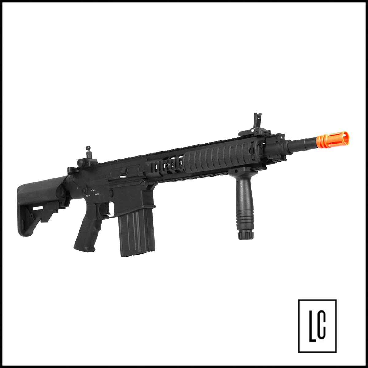 Airsoft construída em metal e que possui engrenagens também em metal (reforçadas) o que torna este modelo muito robusto e a coloca na categoria de primeira qualidade dentre os modelos disponíveis no mercado mundial.