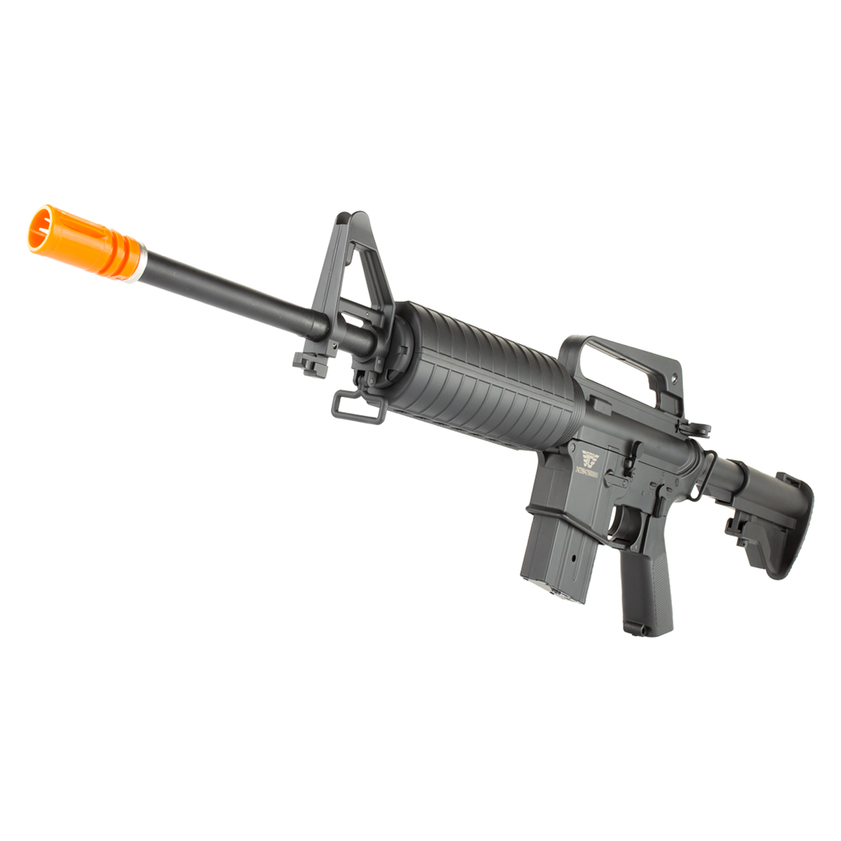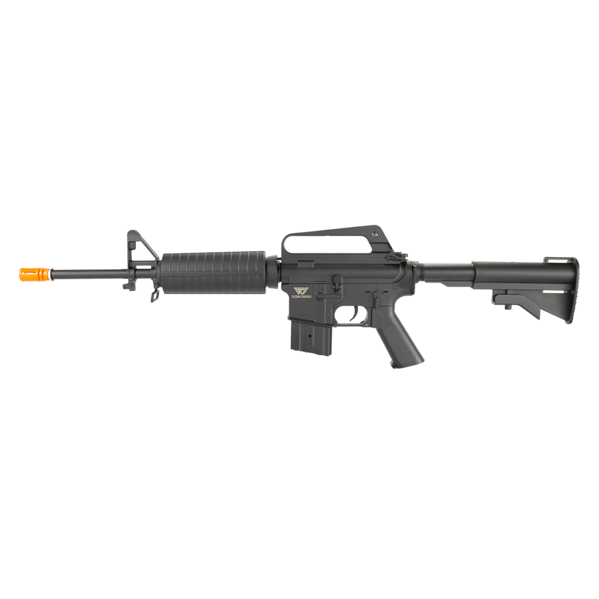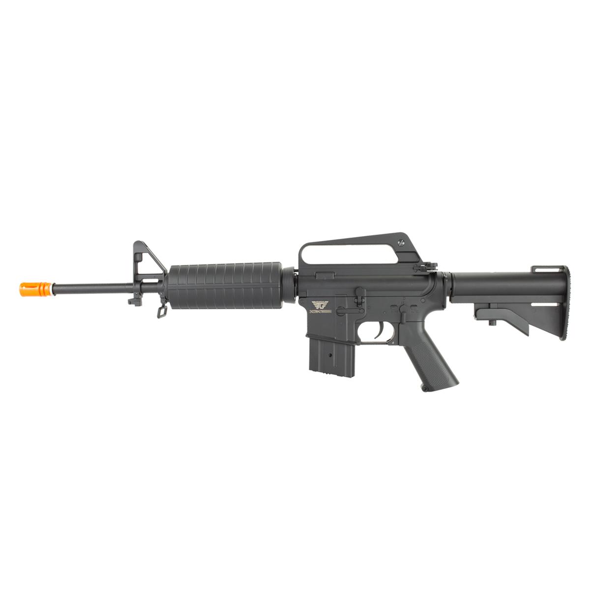 Rifle Airsoft Elétrico M4 (AEG) fabricado pela Jing Gong (JG Works) em polímero, com alta resistência, durabilidade e força.
