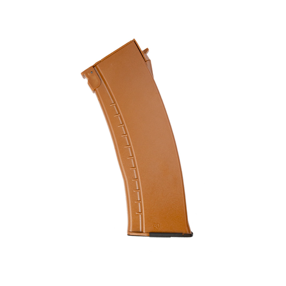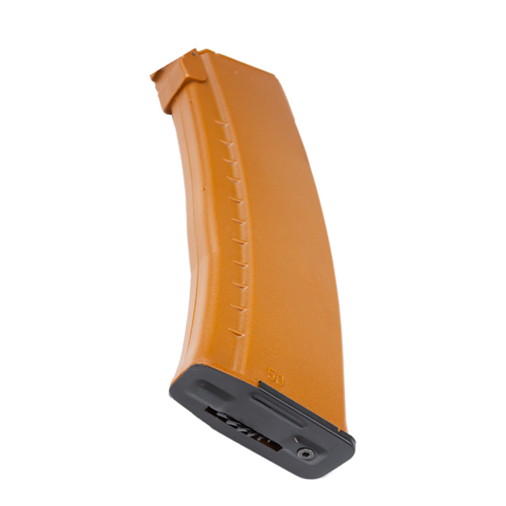 Seu magazine é hi-cap, de 300 rounds, fabricado em polímero.
