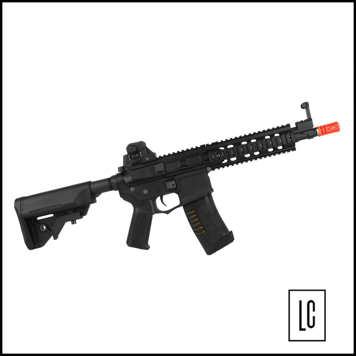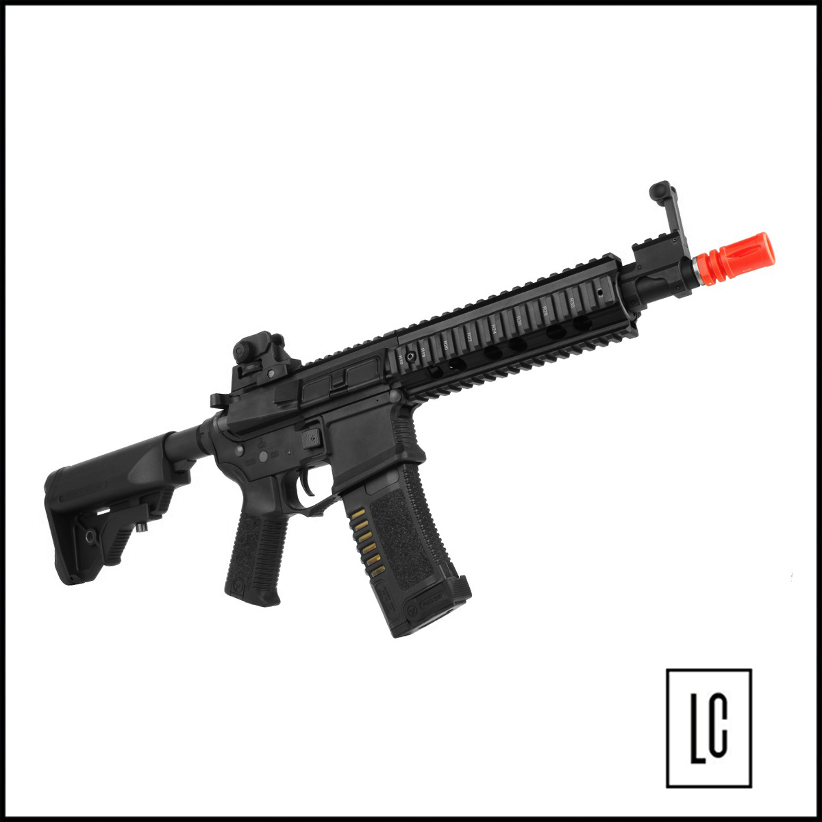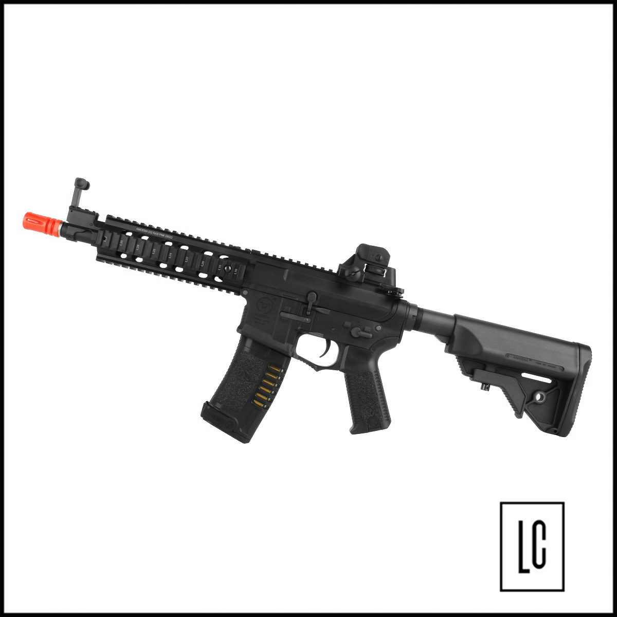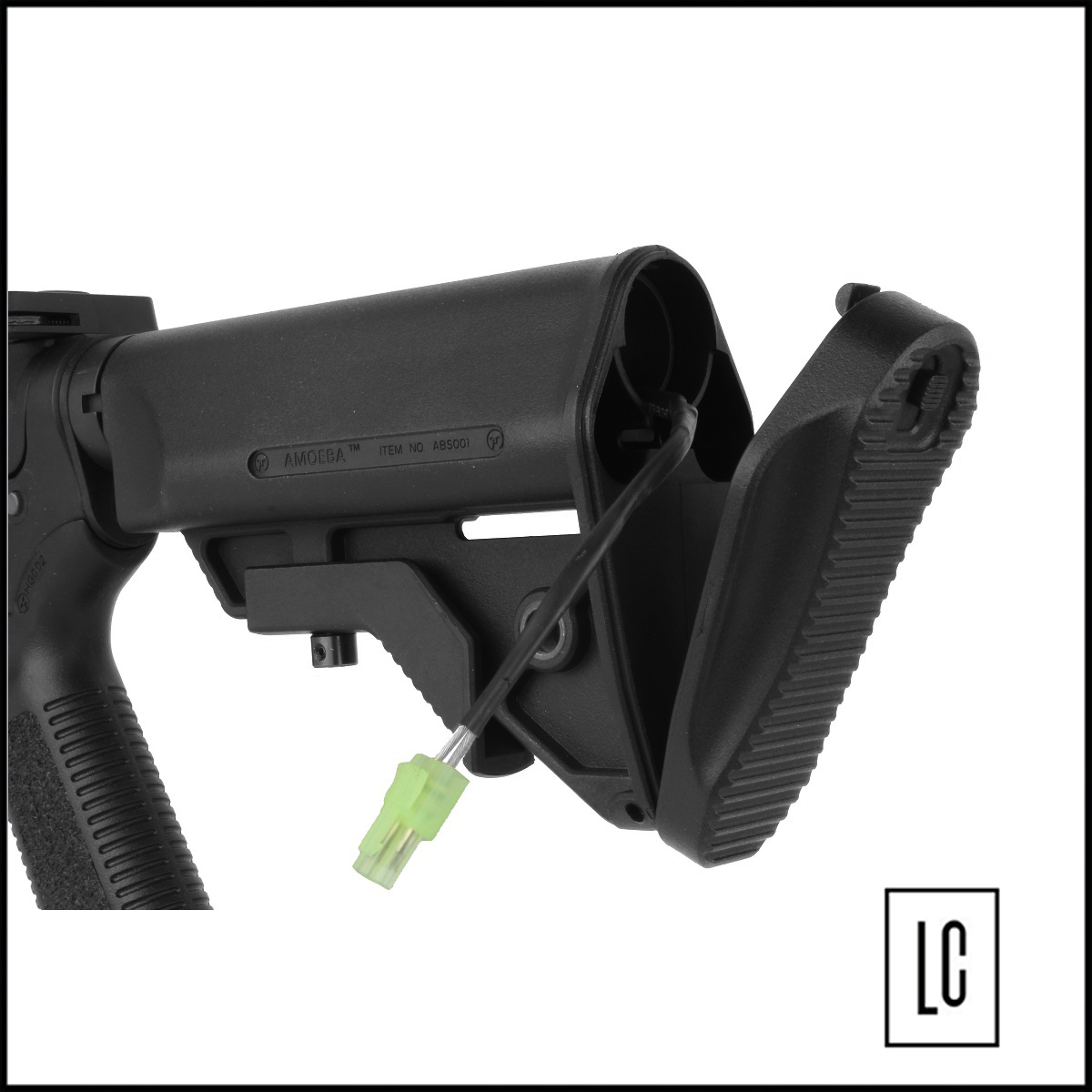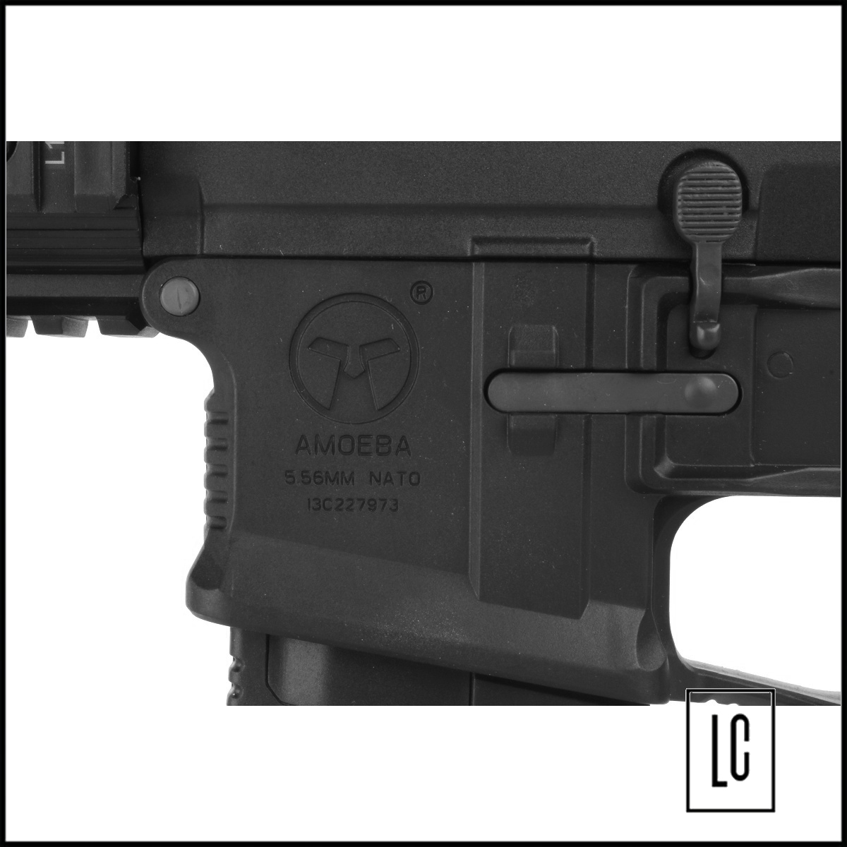 RIFLE DE AIRSOFT AMOEBA M4 CQB BLACK é um modelo de airsoft elétrico, desenvolvido pela Ares, possui sistema de gatilho eletrônico, sistema de troca rápida de mola, controle de acionamento eletrônico, caixa de velocidades, possui trilhos frontais de 22mm.