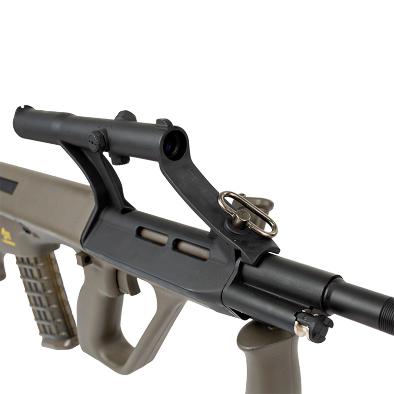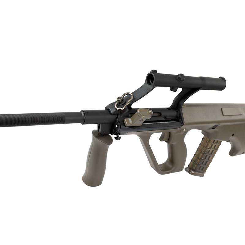 Possui suporte para bandoleira na parte frontal e traseira em metal, que permite a fixação de uma bandoleira oferecendo melhor mobilidade e facilidade no transporte do seu Rifle Airsoft durante os jogos.