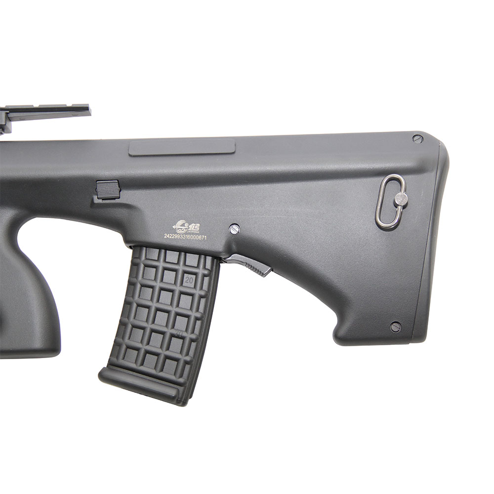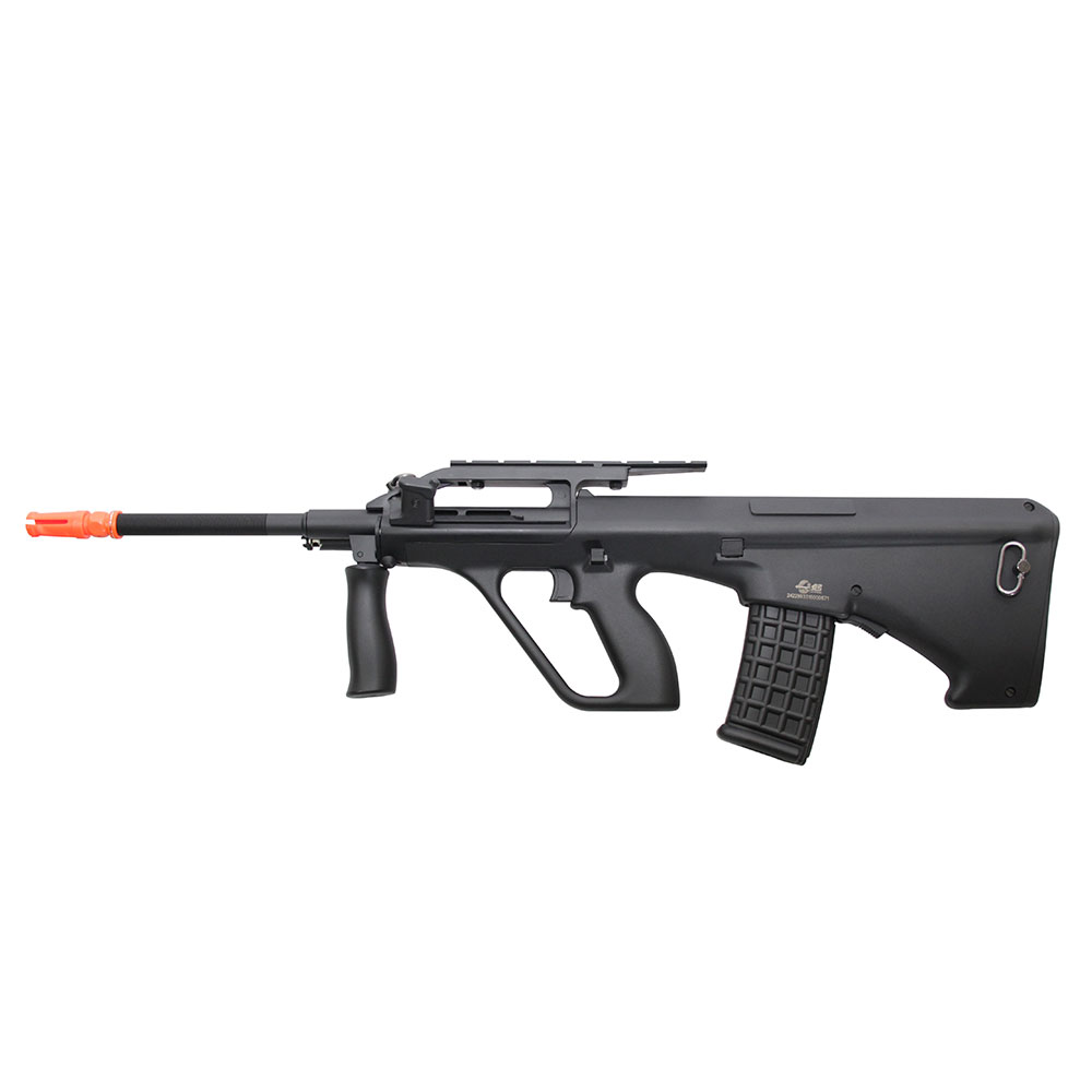 Este é um modelo que vem com trilho superior, usa uma gear box V3 que vem com um sistema de mudança de mola rápido. Além disso, o projeto de coronha Bullpup da série gera alta potência com um alto grau de realismo. Abaixo estão as características especiais desta AEG:
