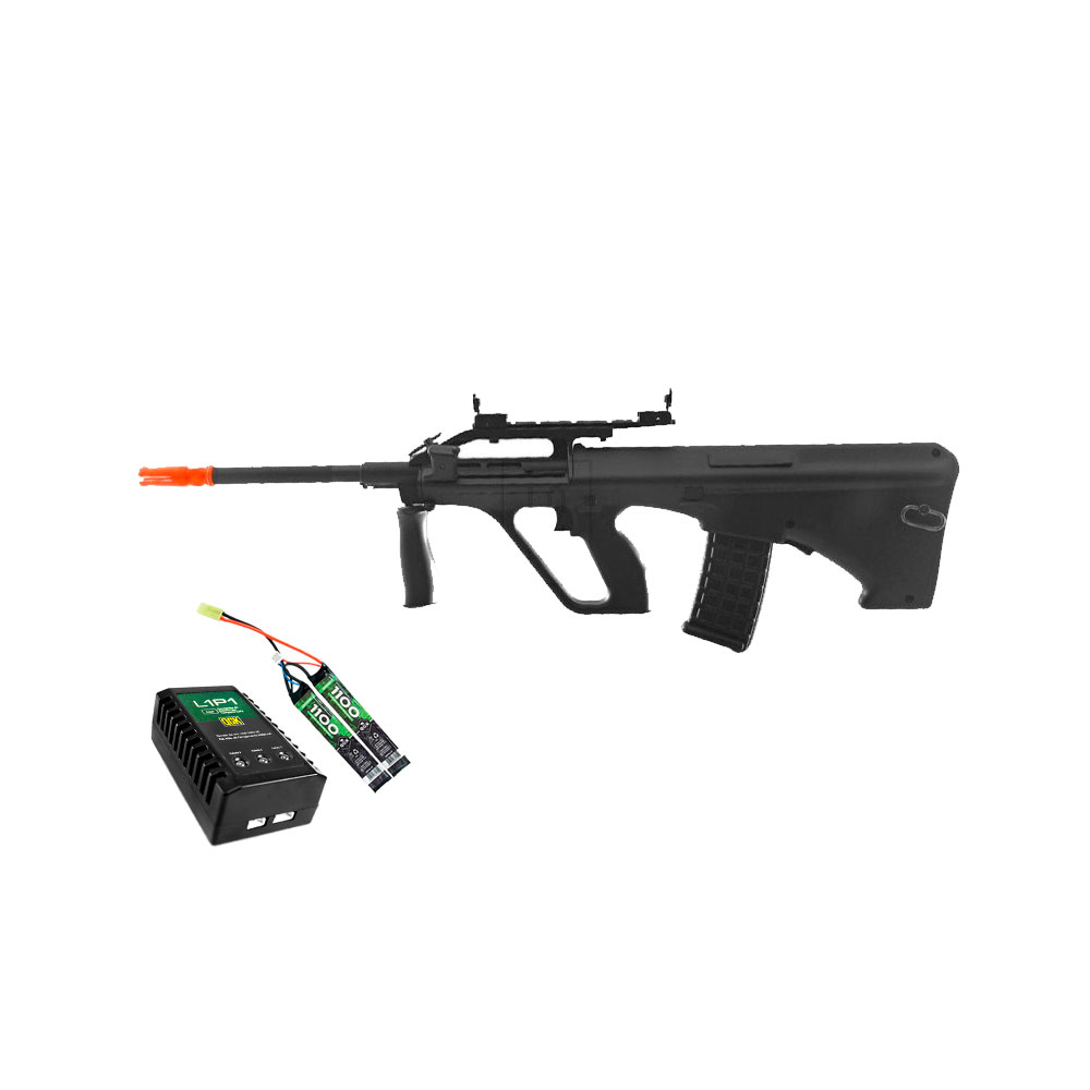 Rifle AU-1G é construído em polímero e metal, possui grip ajustável para maior liberdade no momento de disparo.