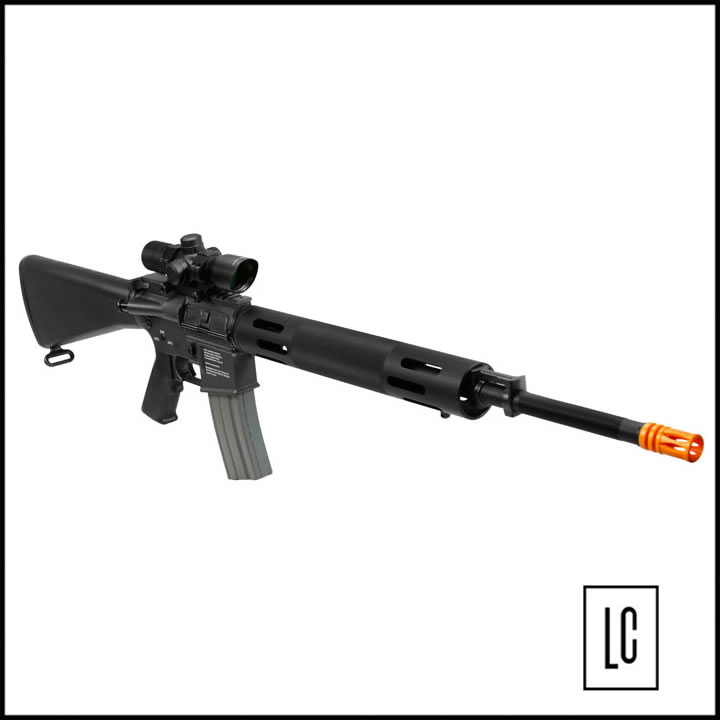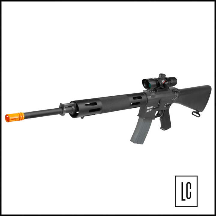 Gearbox de metal, sistema de Hop-up SPIN UP e modo de disparo, semi-automatico e automatico.