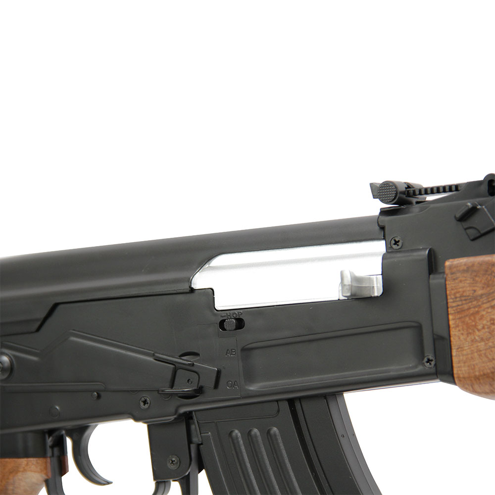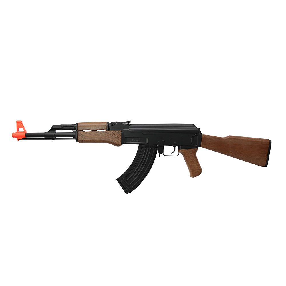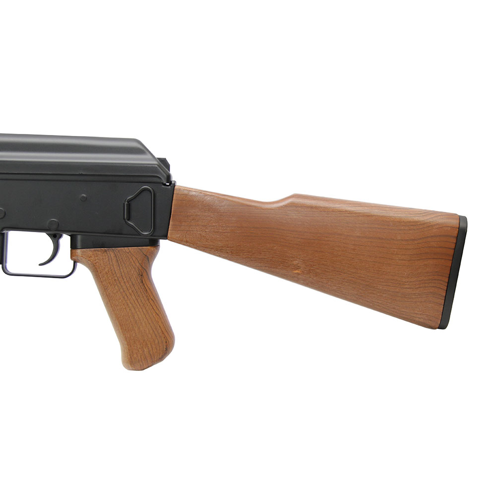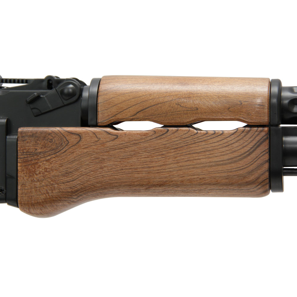 Com acabamento em polímero com detalhes que imitam madeira esse equipamento alcança a velocidade de 90fps e seu magazine hi-cap tem capacidade para 450BB’s.
