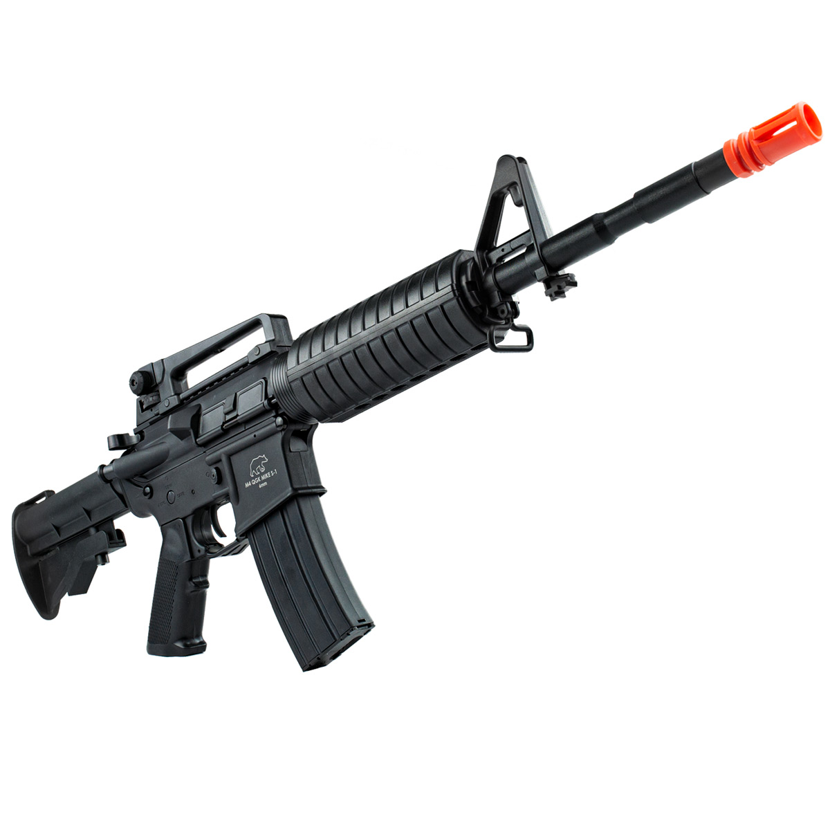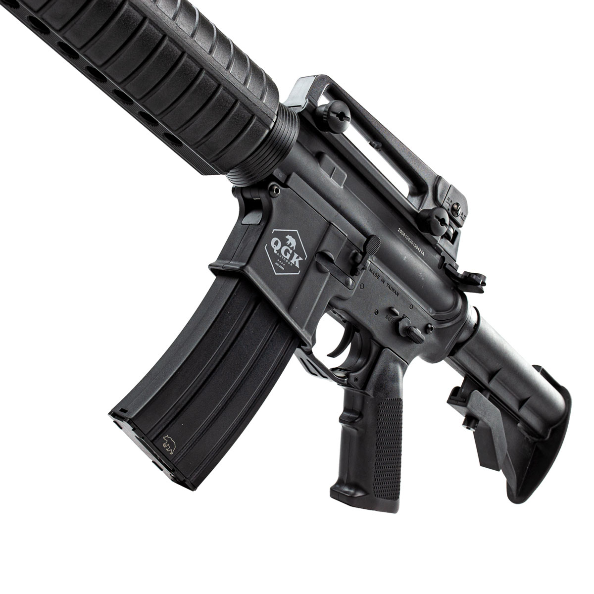 Rifle Airsoft Elétrico M4 fabricado pela QGK modelo Mike com ação semi-automática e full automática tem velocidade de 300fps e energia de 0.83j com bbs 0.20g.