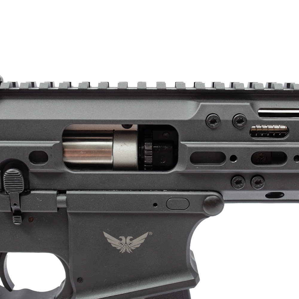 Possui sistema de controle eletrônico Falcon, permitindo utilizar modos de disparos programáveis, como: disparo duplo, rajada de 1 a 5 tiros, etc.