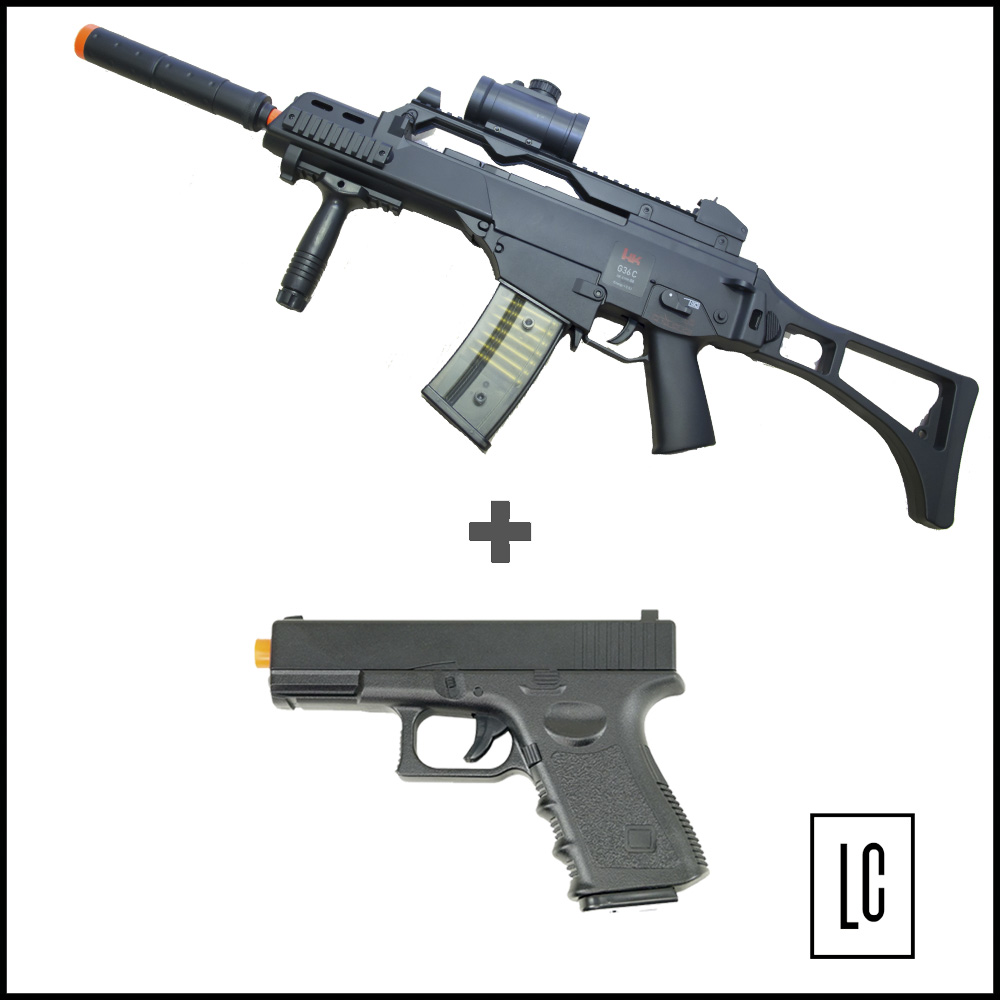 Super combo de Arma de Airsoft, na LojaDaCarabina! Combo com Rifle G36c e também uma pistola Glock g15. Ideal para quem está iniciando no esporte.