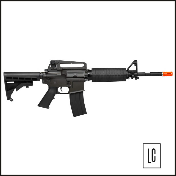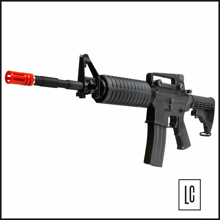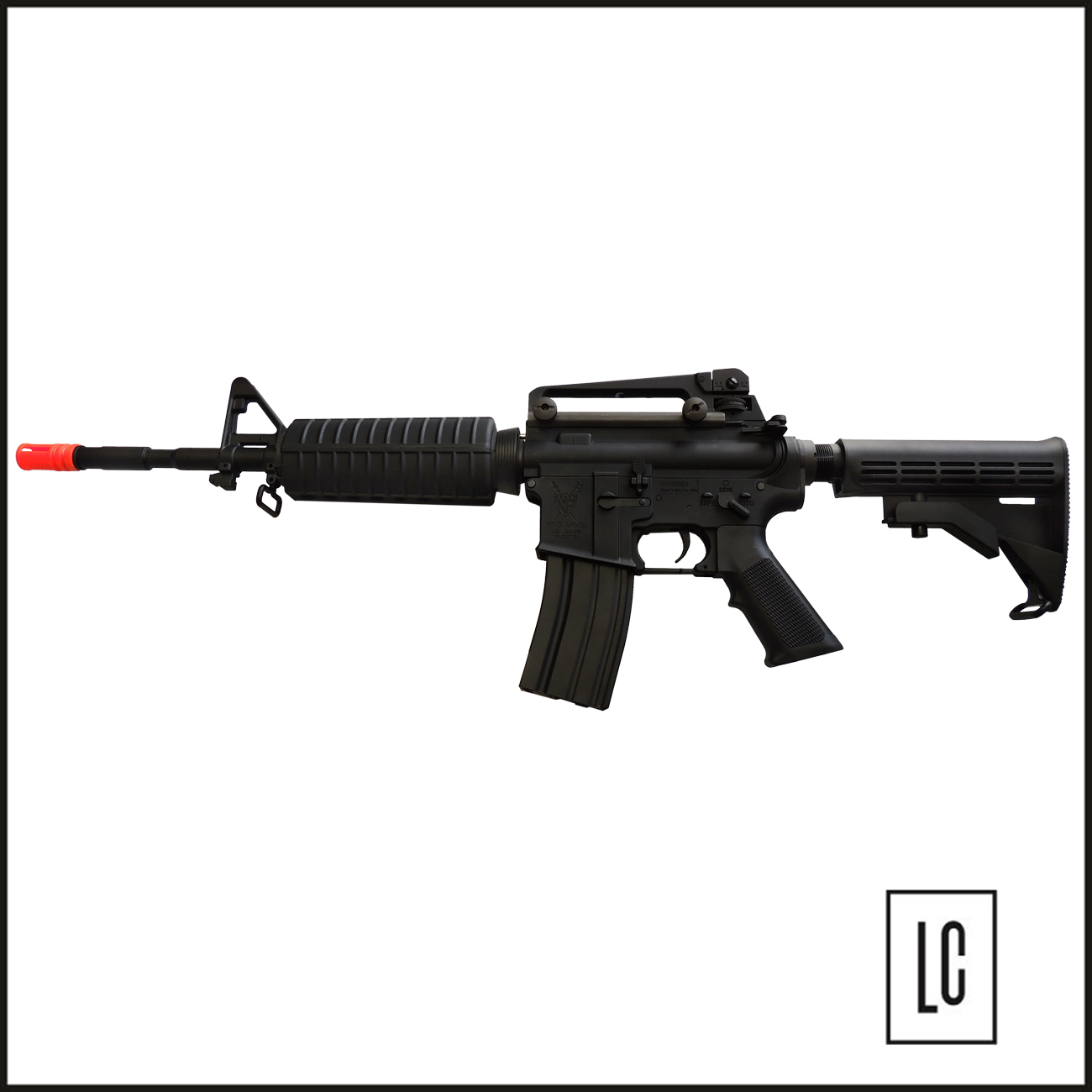 RIFLE DE AIRSOFT KING ARMS M4A1 FULL METAL é um modelo em full metal desenvolvido pela King Arms. Possui coronha retratil onde é possível ajustar o estagio da mesma. Possui mira regulável, alças para adaptação de bandoleira, sistema de disparo automático, semi-automático e trava de segurança, sistema de Hop-Up ajustável BAXS System.