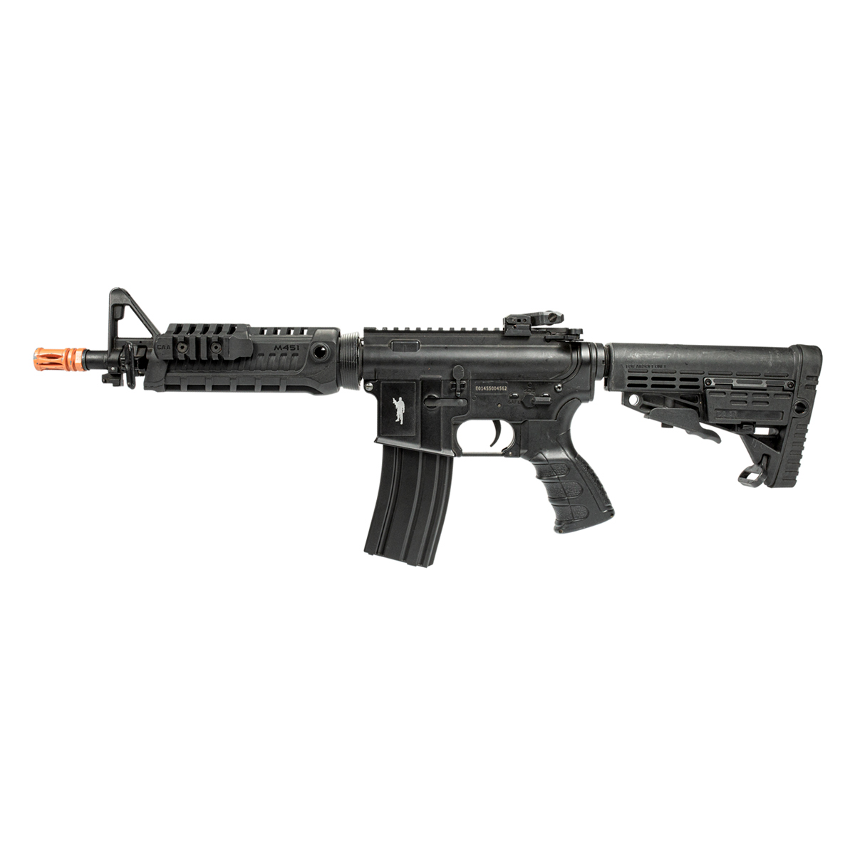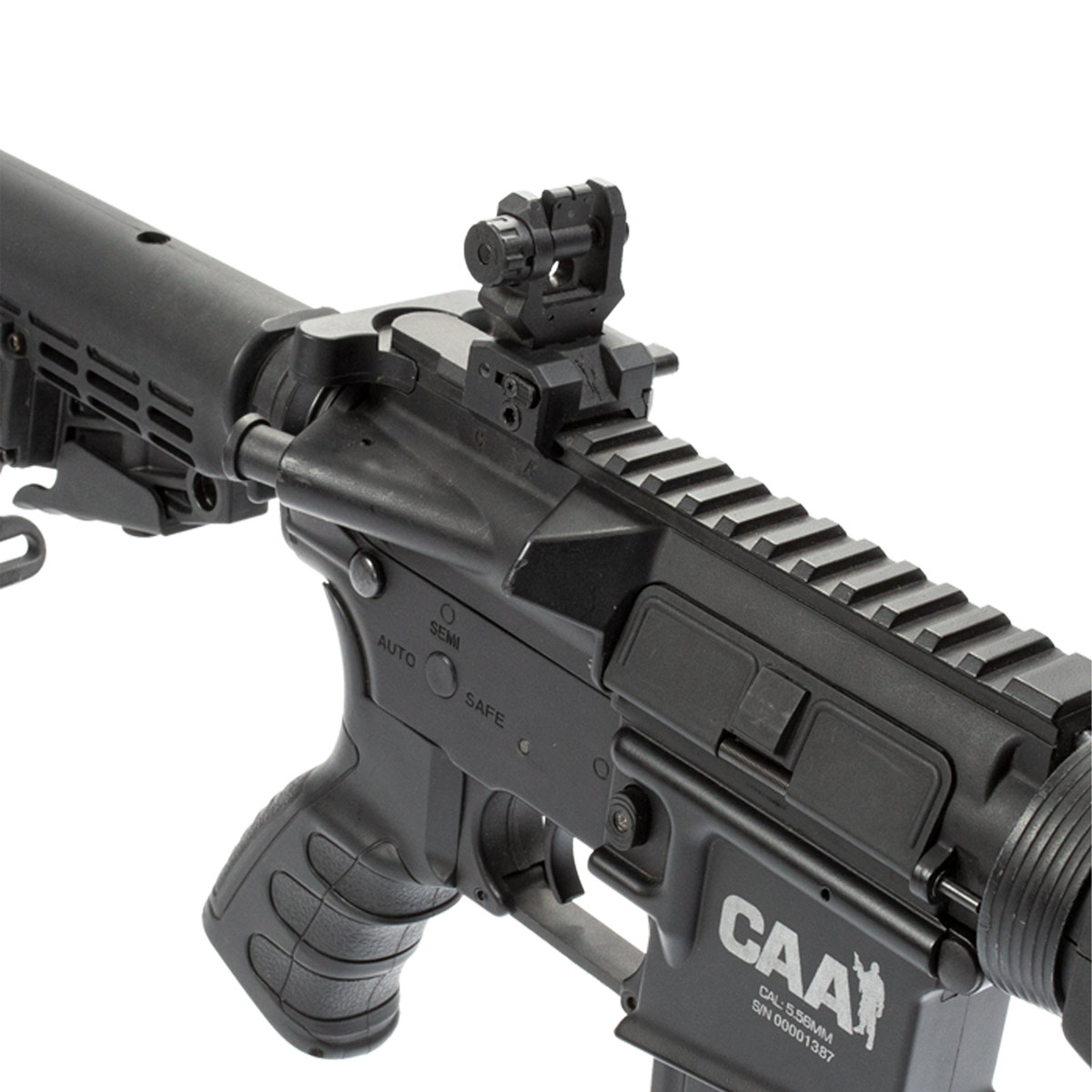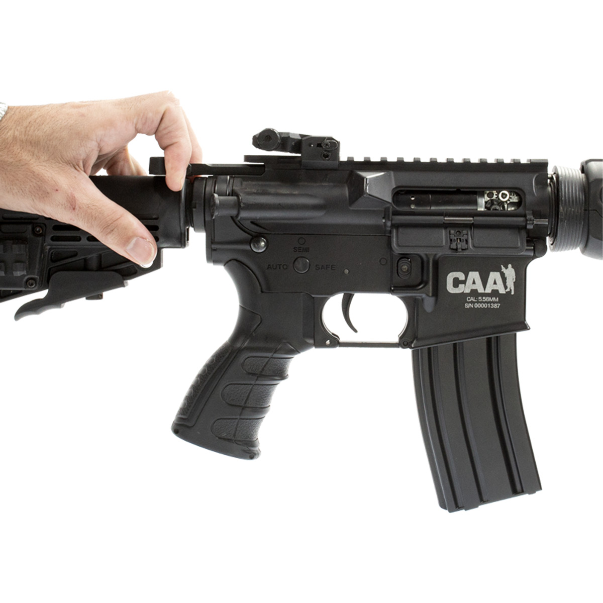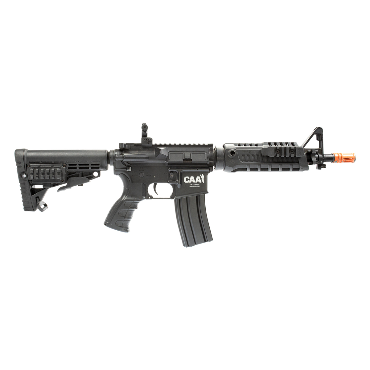Rifle de airsoft do M4A1 CAA Custom, equipamento produzido pela CAA, com funcionamento elétrico e feito com polímero reforçado em fibra de nylon de alta resistência. Um modelo totalmente customizado, desde as marcas comerciais da CAA oficiais e número de série foram gravados a laser no lower receiver (corpo do equipamento a cima do magazine) até o punho ergonômico, que foi projetado para oferecer grande conforto e melhor segurança no manuseio do equipamento.