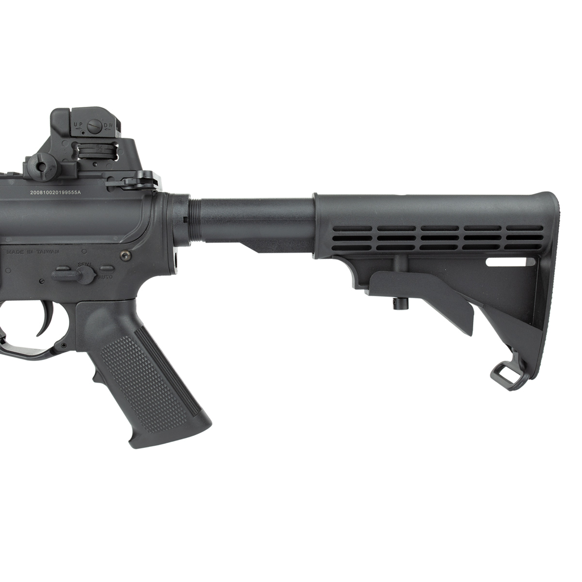 - Modo de disparo: Safe, Semi automático e Full automático