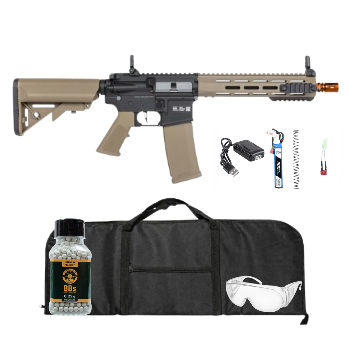 Rifle Airsoft M4 Specna Arms SA-F03 Flex Half Tan Gatilho Hal Gen 2 + Capa + Oculos + BBs 0.25g