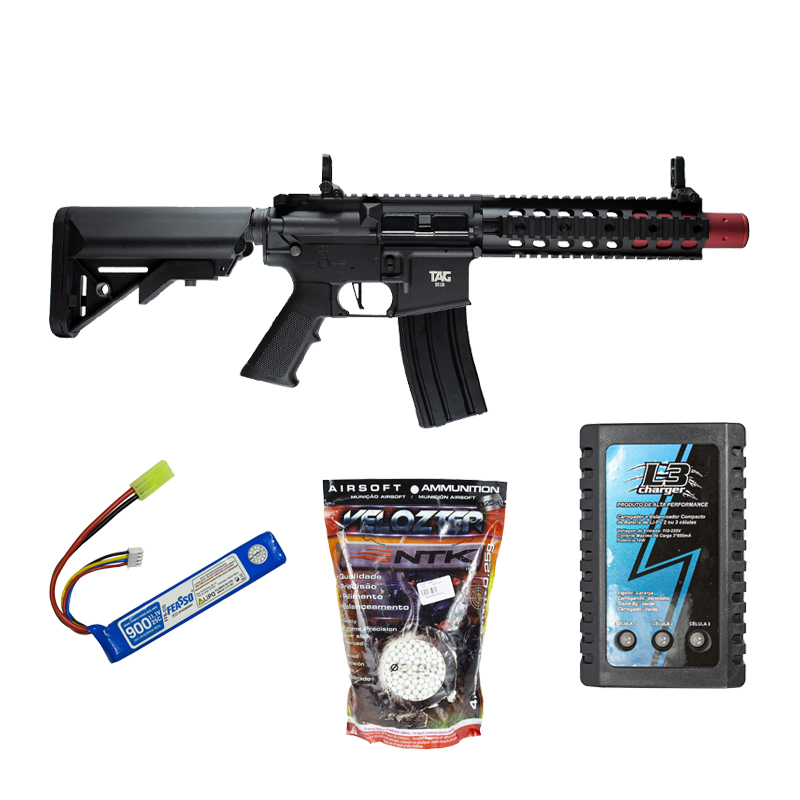 TAG DELTA: FUZIL AIRSOFT M4 SPECNA ARMS + BATERIA LIPO 11.1V + CARREGADOR PARA BATERIA + BBS 0.25G