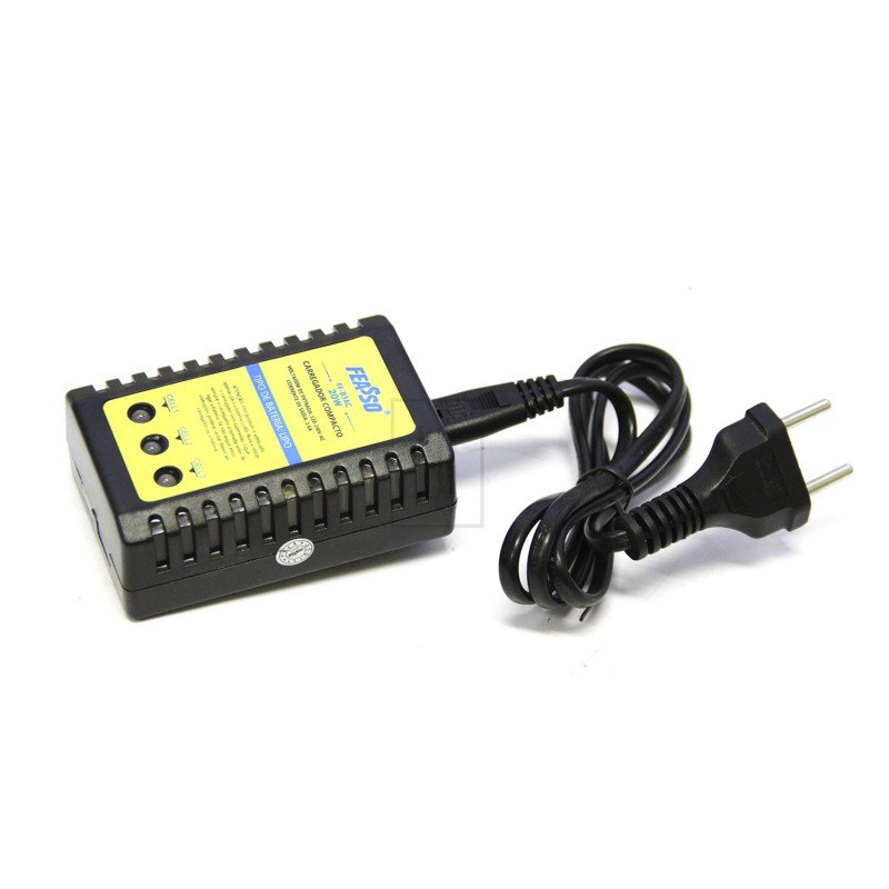 Este carregador é compacto leve, criado para carregar baterias Lipo/Life de 2s e 3s.