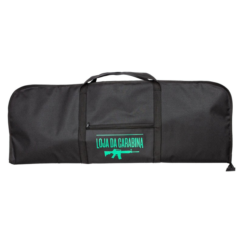 Possui mira aberta com ajuste de lateralidade e elevação, alças para adaptação de bandoleira.
