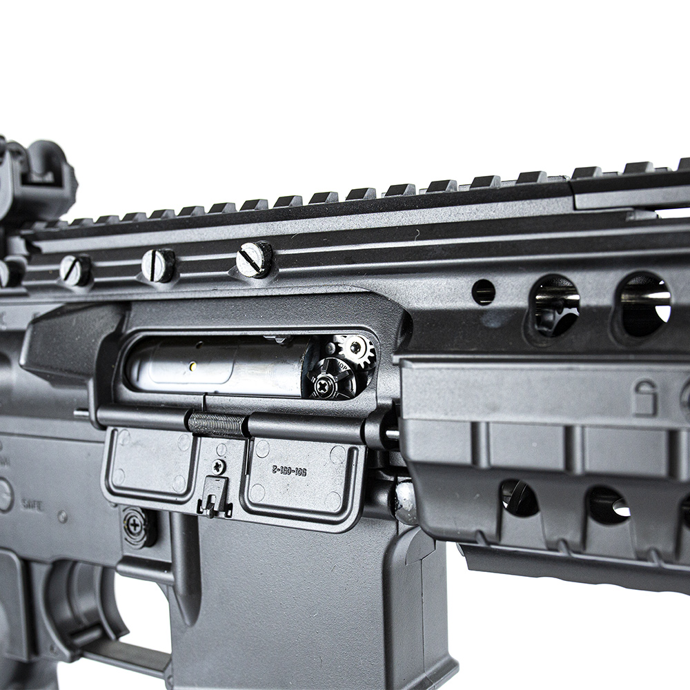Seletor de disparos destro com modo safe, semi-automático e full automático.